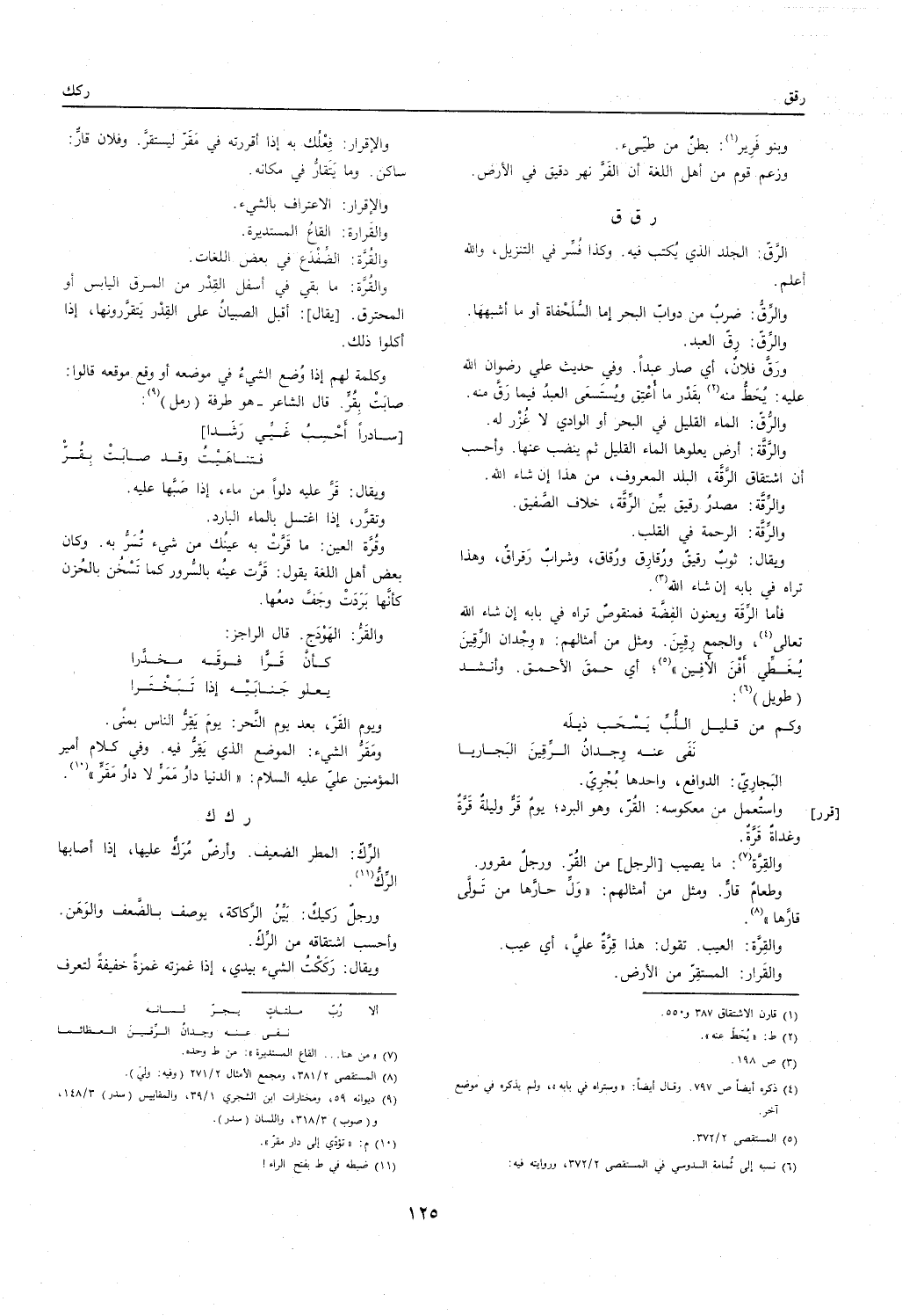وَيُقَال: ثوب رَقِيق ورقارق ورقاق وشراب رقراق وَهَذَا ترَاهُ فِي بَابه إِن شَاءَ الله.