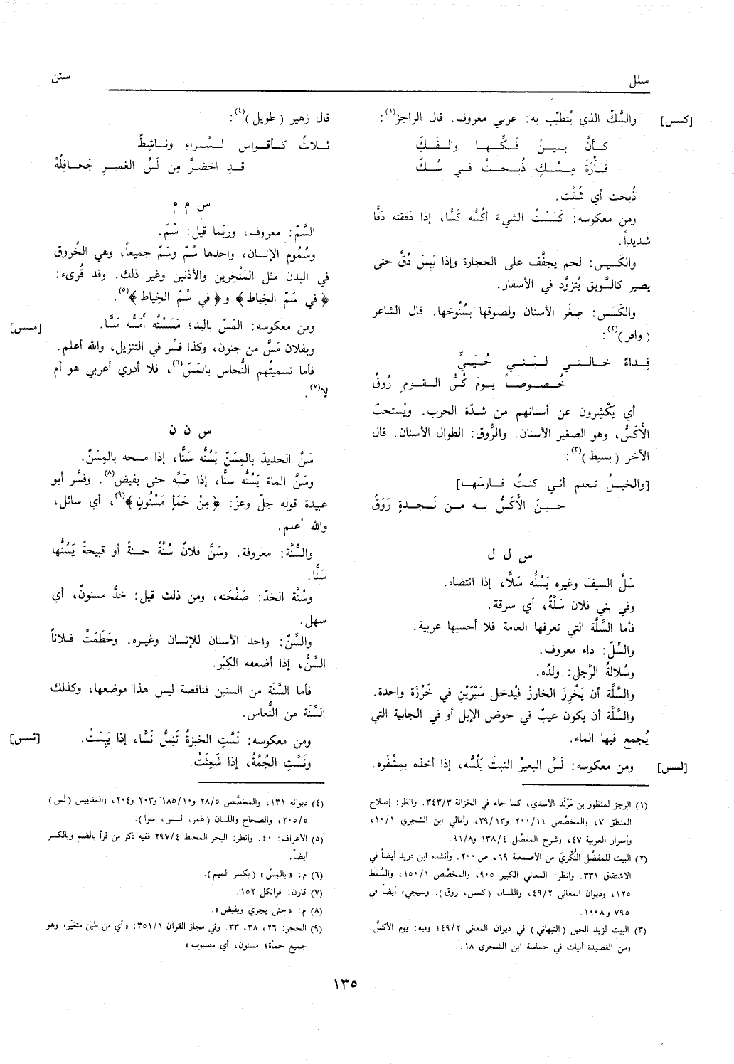[لسس] وَمن معكوسه: لس الْبَعِير النبت يلسه إِذا أَخذه بمشفره.