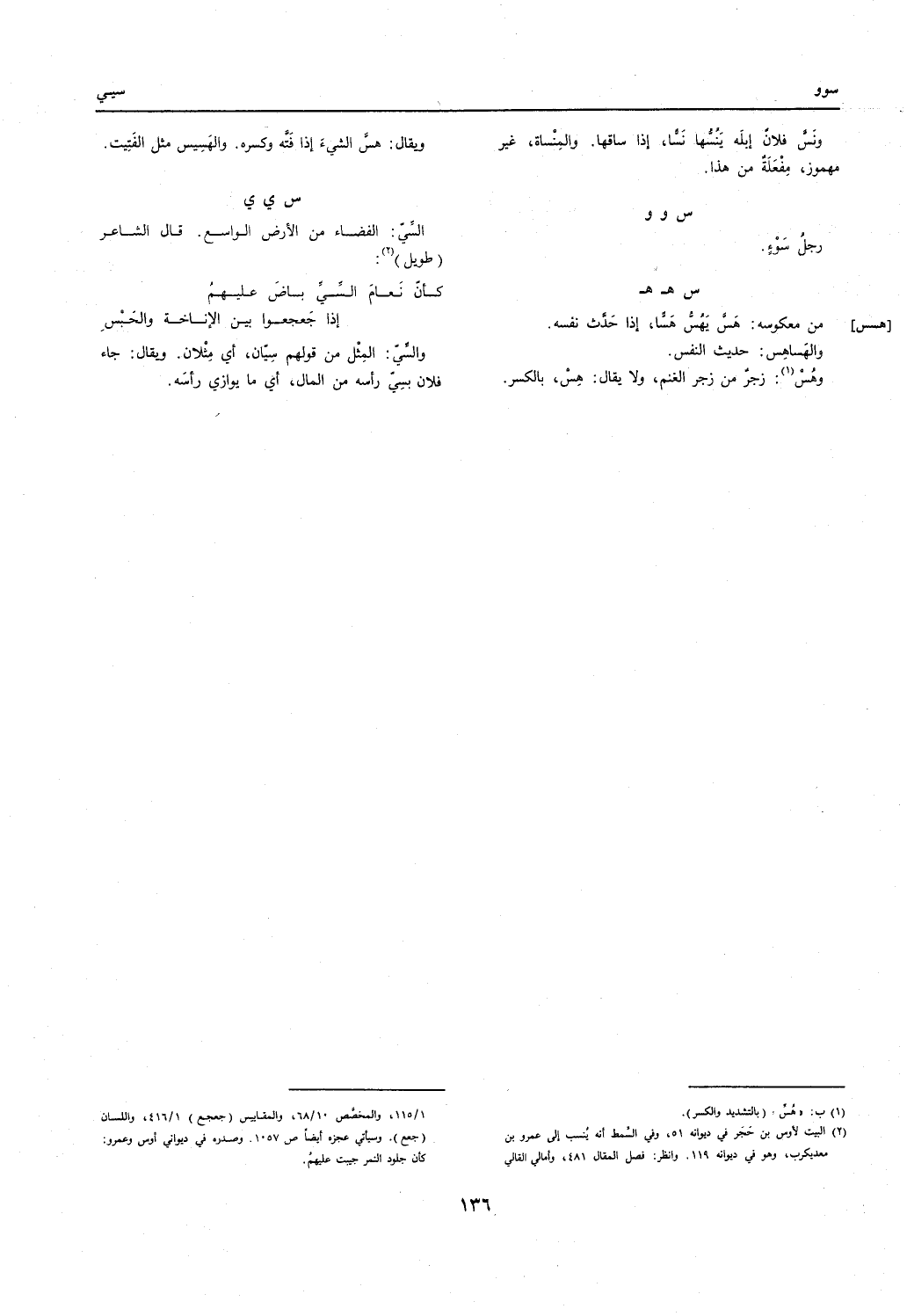 السي: الفضاء من الأَرْض الْوَاسِع. قَالَ الشَّاعِر // (طَوِيل) //: