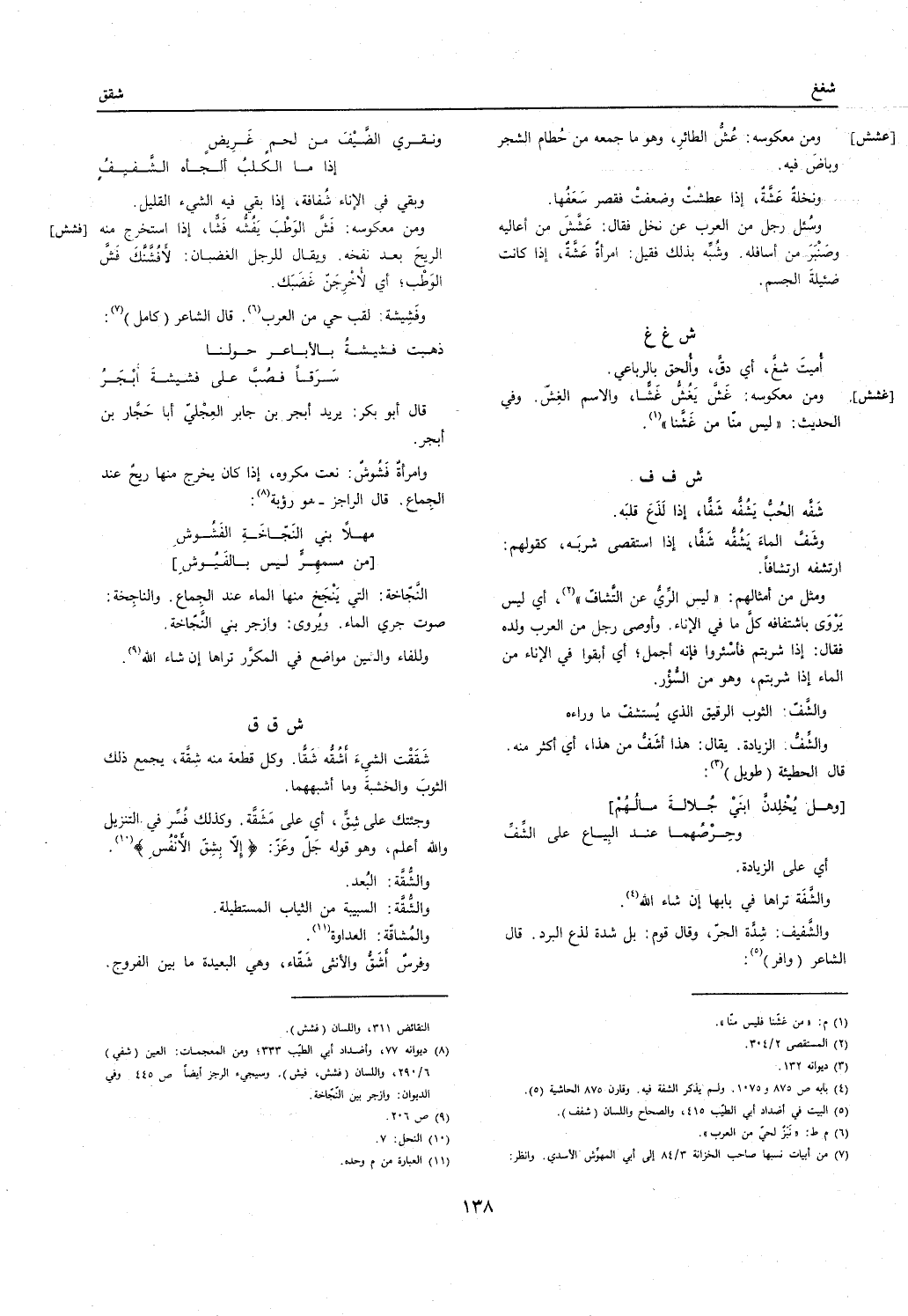 وفشيشة: لقب حَيّ من الْعَرَب. قَالَ الشَّاعِر // (كَامِل) //: