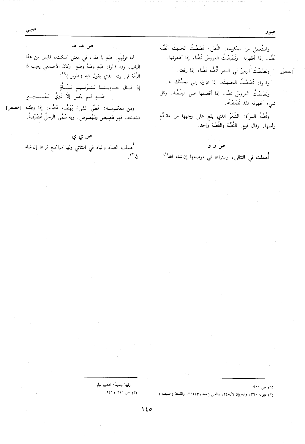 أهملت الصَّاد وَالْيَاء فِي الثنائي وَلها مَوَاضِع ترَاهَا إِن شَاءَ الله.