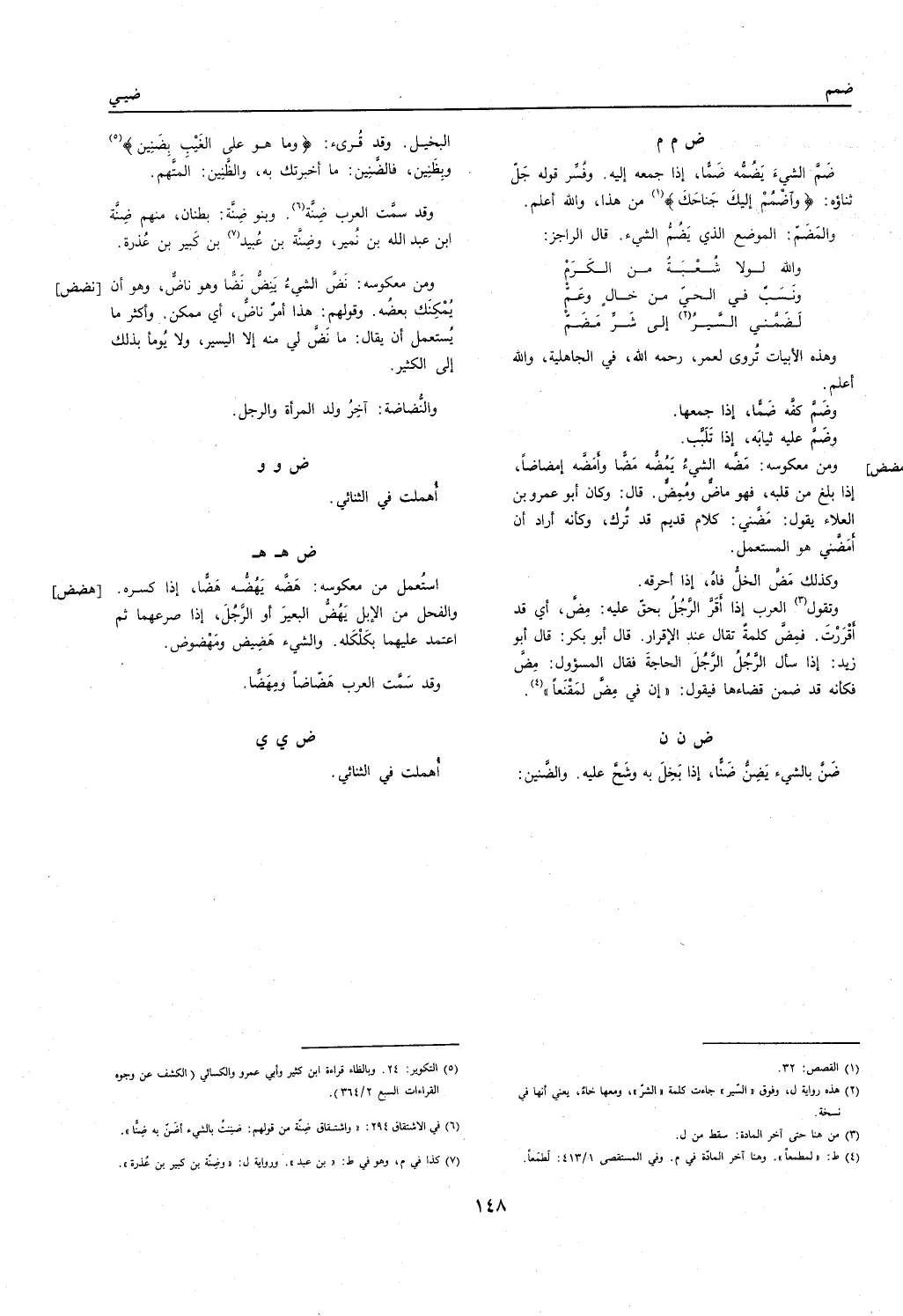 ضم الشَّيْء يضمه ضما إِذا جمعه إِلَيْهِ. وَفسّر قَوْله جلّ ثَنَاؤُهُ: {واضمم إِلَيْك جناحك} من هَذَا وَالله أعلم.