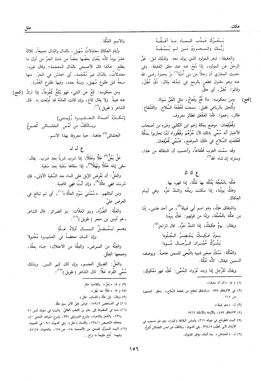 واشتقاق عك وَهُوَ اسْم أبي قَبيلَة من أحد هذَيْن إِمَّا من عكه بِالْحجَّةِ وَإِمَّا من قَوْلهم: عك يَوْمنَا.