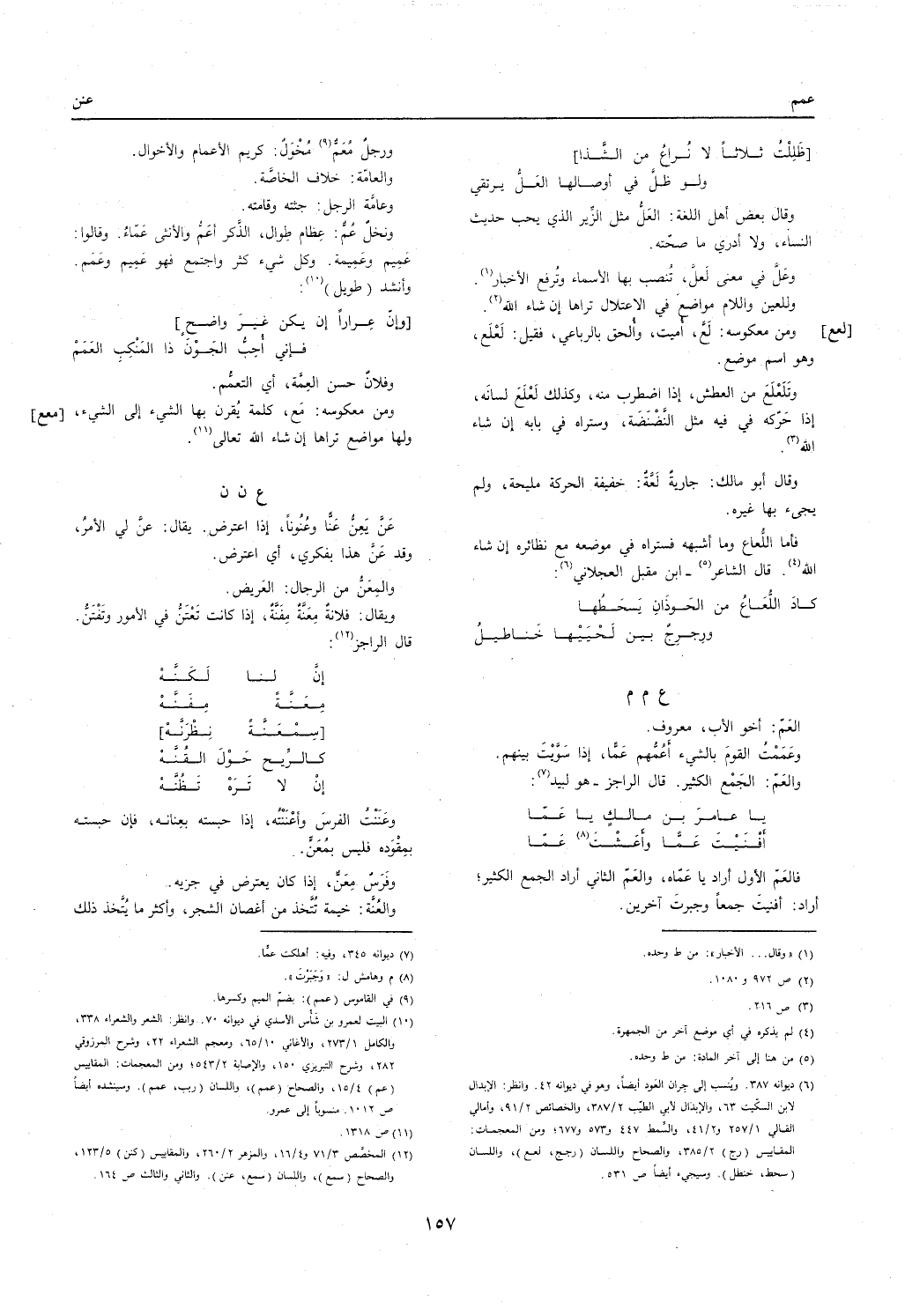 وَالْعم: الْجمع الْكثير. قَالَ الراجز - هُوَ لبيد -: