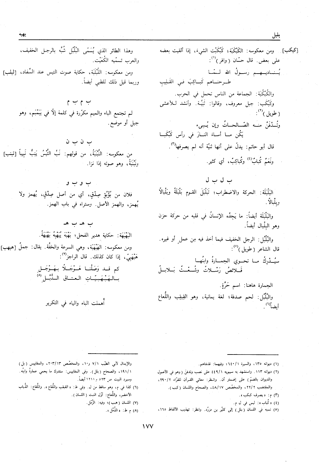 [هبهب] وَمن معكوسه: الهبهبة وَهِي السرعة والخفة. يُقَال: جمل هبهبي إِذا كَانَ كَذَلِك. قَالَ الراجز: