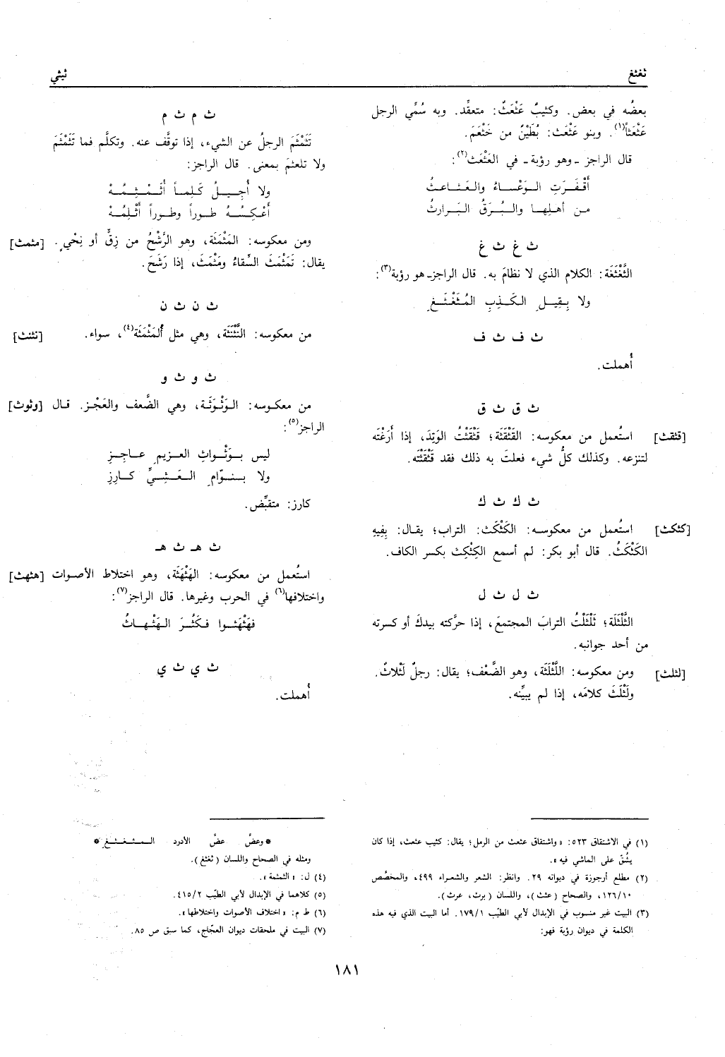 تثمثم الرجل عَن الشَّيْء إِذا توقف عَنهُ. وَتكلم فَمَا تثمثم وَلَا تلعثم بِمَعْنى. قَالَ الراجز: