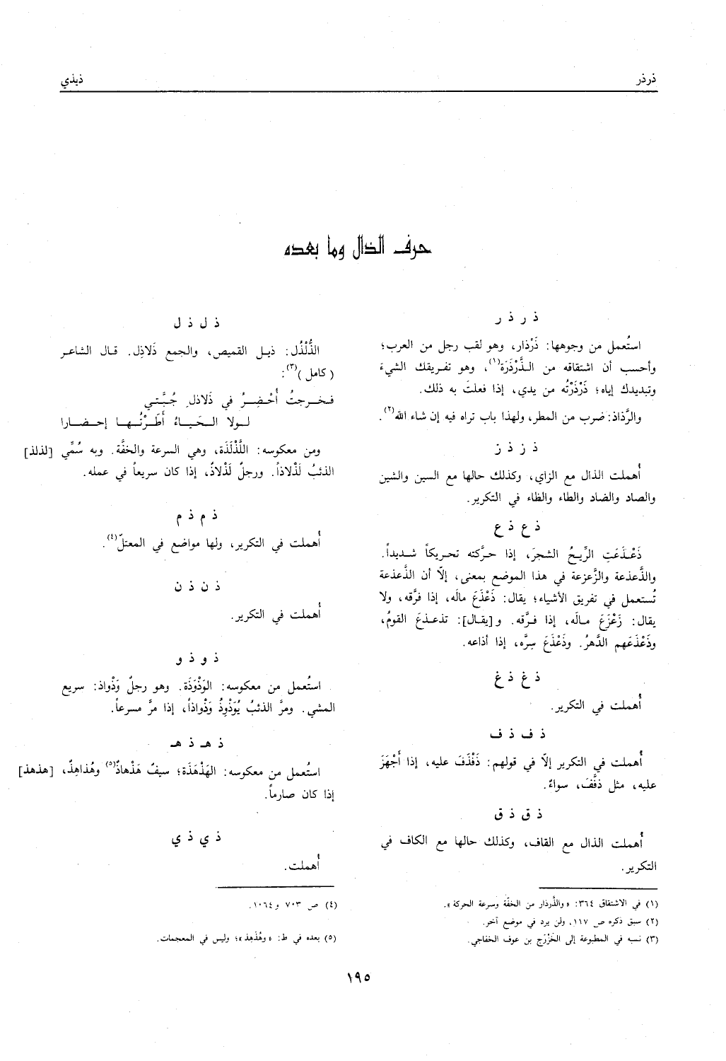 أهملت الذَّال مَعَ الْقَاف وَكَذَلِكَ حَالهَا مَعَ الْكَاف فِي التكرير.