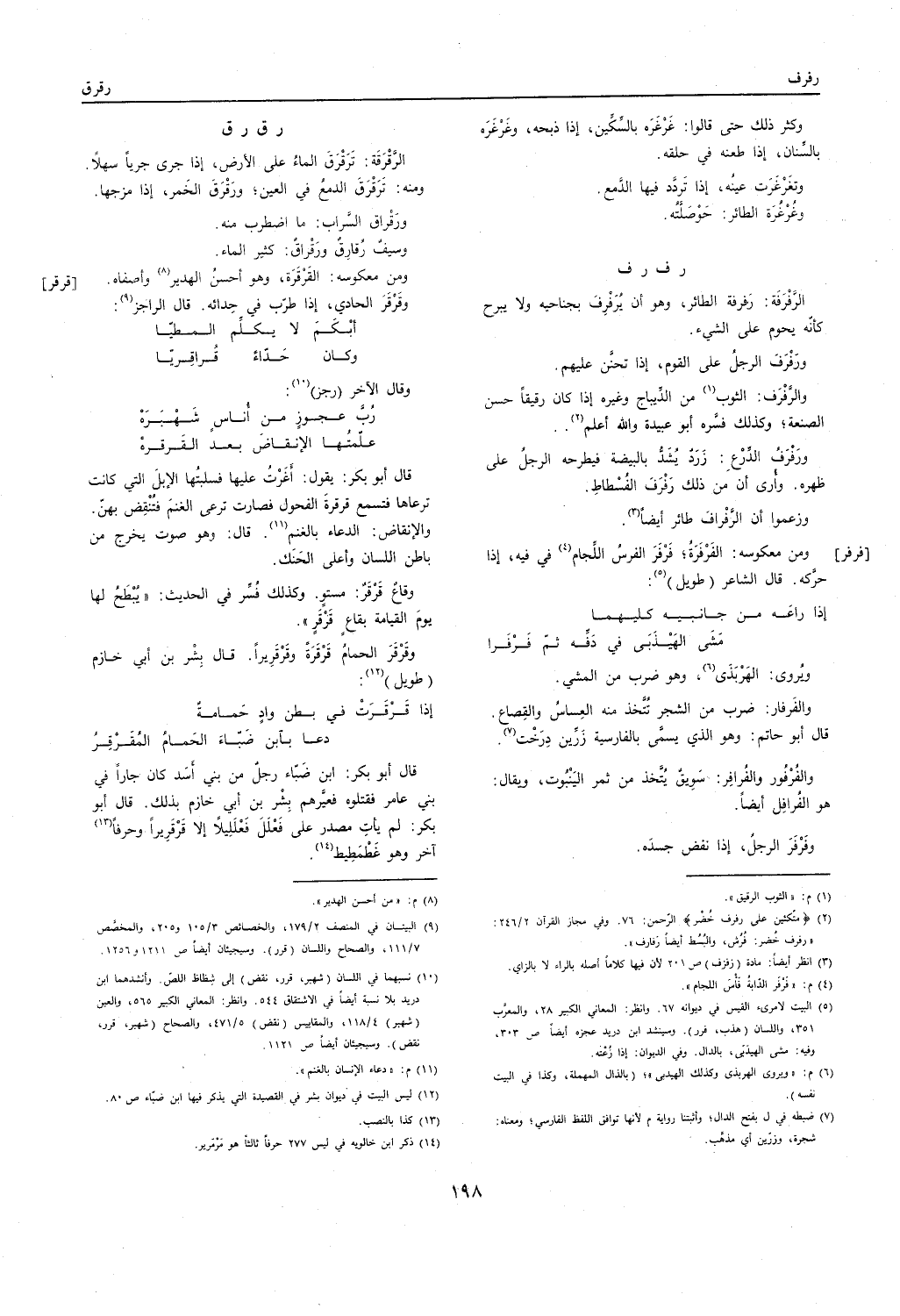 [فرفر] وَمن معكوسه: الفرفرة فرفر الْفرس اللجام فِي فِيهِ إِذا حركه. قَالَ الشَّاعِر // (طَوِيل) //: