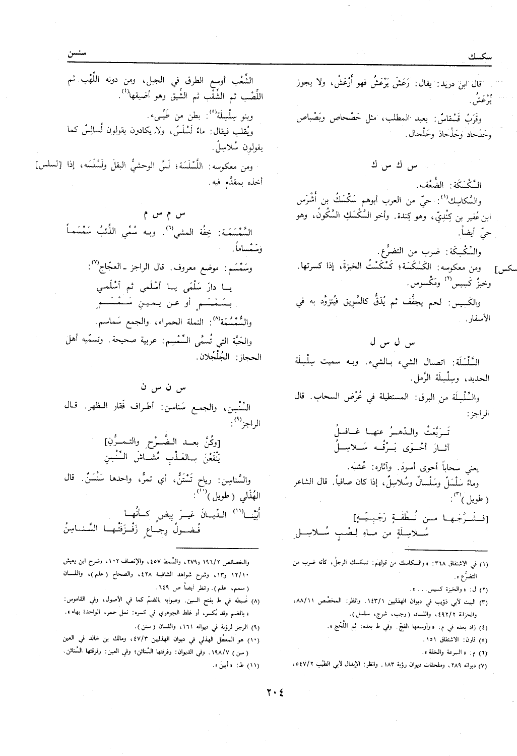 السنسن وَالْجمع سناسن: أَطْرَاف فقار الظّهْر. قَالَ الراجز: