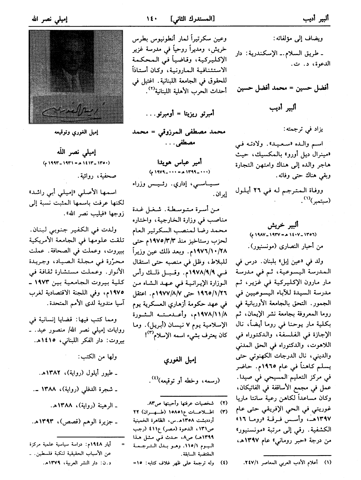 (¬3) اطلاعات ع 15851 (طهران) 22 أرديبهشت 1358 هـ. س، الظاهرة الخمينية ص 131، الدعوة (مصر) ع 411 (رجب 1399 هـ) ص 8، حدث في مثل هذا اليوم 1/ 115. وهو بدل الترجمة المقتضبة السابقة.