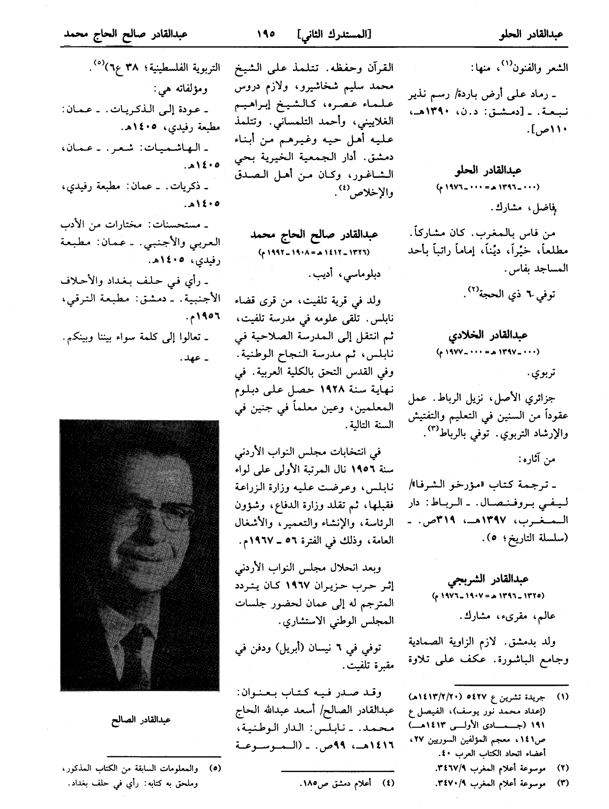 عبد القادر الصالح/ أسعد عبد الله الحاج محمد.- نابلس: الدار الوطنية، 1416 هـ، 99 ص.- (الموسوعة التربوية الفلسطينية؛ 38 ع 6) (¬5).