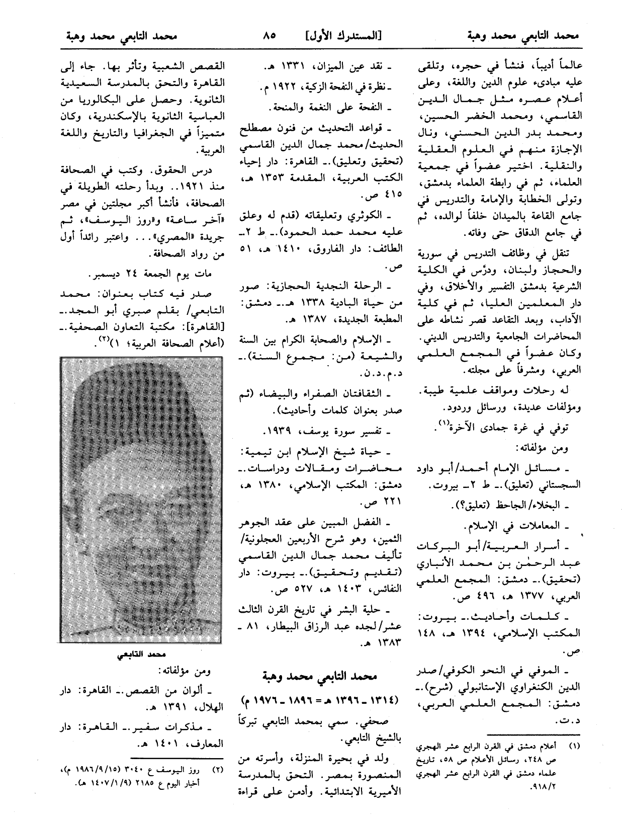 صحفي. سمي بمحمد التابعي تبركا بالشيخ التابعي.