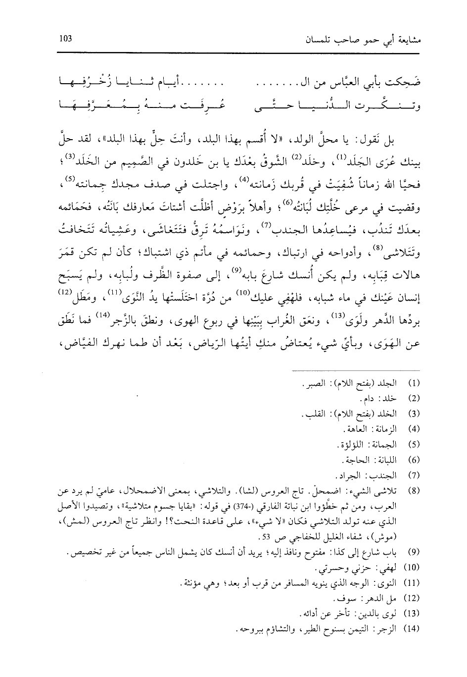 بل نقول: يا محل الولد، لا أقسم بهذا البلد، وأنت حل بهذا البلد، لقد حل بينك عرى الجلد، وخلد الشوق بعدك يا بن خلدون في الصميم من الخلد؛ فحيا الله زماناً