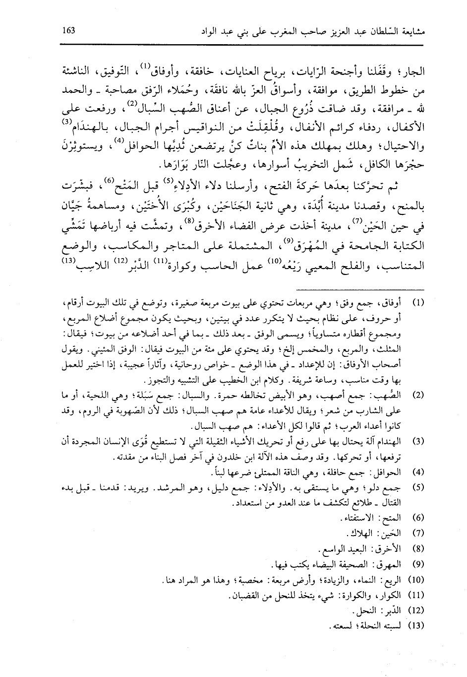 الجارة وقفلنا وأجنحة الرايات، برياح العنايات، خافقة وأوفاق، التوفيق، الناشئة من خطوط الطريق، موافقة، وأسواق العز بالله نافقة، وحملاء الرفق مصاحبة - والحمد لله - مرافقة، وقد ضاقت ذروع الجبال، عن أعناق الصهب السبال، ورفعت على الأكفال، ردفاء كرائم الأنفال، وقلقلت من النواقيس أجرام الجبال، بالهندام والاحتيال في وهلك بمهلك هذه الأم بنات كن يرتضعن ثديها الحوافل، ويستوثرن حجرها الكافل، شمل التخريب أسوارها، وعجلت النار بوارها.