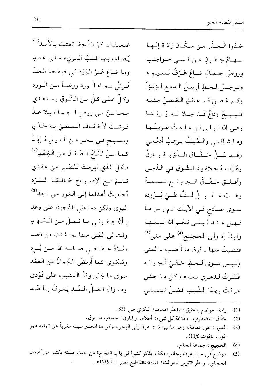 وليلة إذ ولى الحجيج على منى ... وفت لي المنى منها بما شئت من قصد