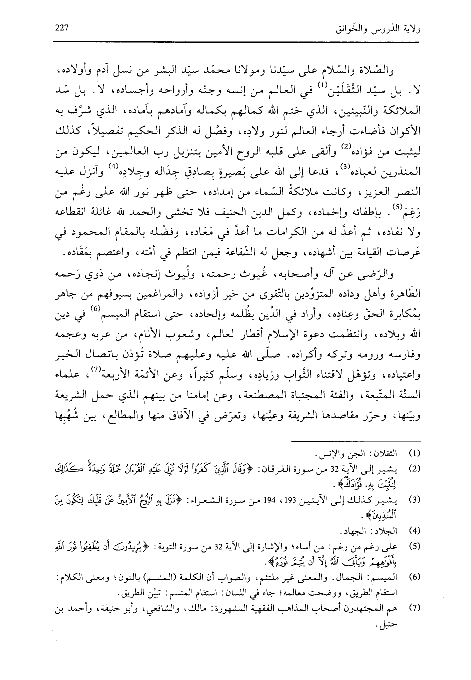 والصلاة والسلام على سيدنا ومولانا محمد سيد البشر من نسل آدم وأولاده، لا. بل سيد الثقلين في العالم من إنسه وجنه وأرواحه وأجساده، لا. بل سيد الملائكة والنبيئين، الذي ختم الله كمالهم بكماله وآمادهم بآماده، الذي شرف به الأكوان