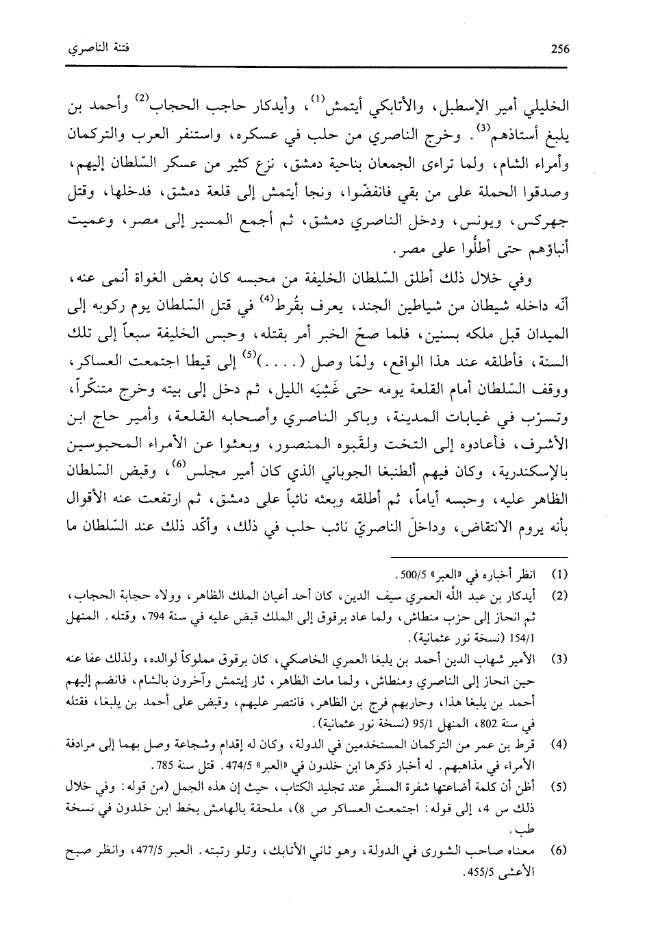 الأقوال بأنه يروم الانتقاض، وداخل الناصر في نائب حلب في ذلك، وأكد ذلك عند السلطان ما