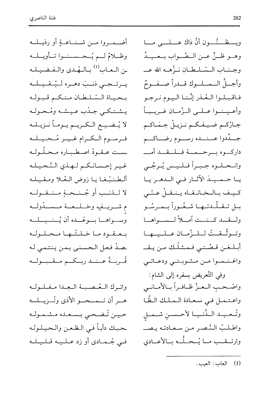 وفي التعريض بسفره إلى الشام: