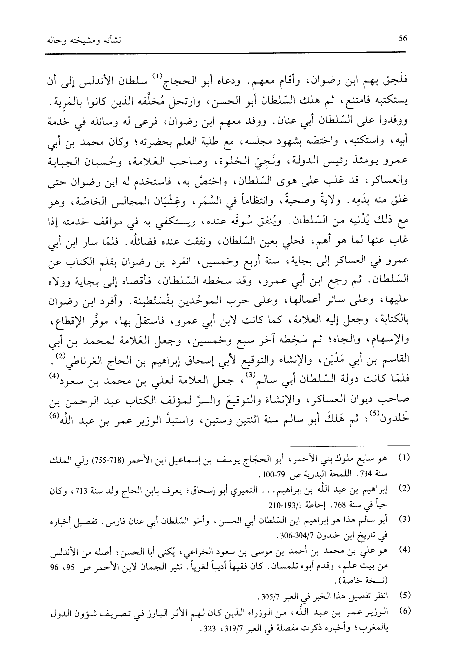 أبيه، واستكتبه، واختصه بشهود مجلسه، مع طلبة العلم بحضرته؛ وكان محمد بن أبي عمرو يومئذ رئيس الدولة، ونجي الخلوة، وصاحب العلامة، وحسبان الجباية والعساكر، قد غلب على هوى السلطان، واختص به، فاستخدم له ابن رضوان حتى غلق منه بدمه. ولاية وصحبه، وانتظاماً في السمر، وغشيان المجالس الخاصة، وهو من ذلك يدنيه من السلطان. وينفق سوقه عنده، ويستكفي به في مواقف خدمته إذا غاب عنها لما هو أهم، فحلي بعين السلطان، ونفقت عنده فضائله. فلما سار ابن أبي عمرو في العساكر إلى بجاية، سنة أربع وخمسين، انفرد ابن رضوان بقلم الكتاب عن السلطان. ثم رجع ابن أبي عمرو، وقد سخطه السلطان، فأقصاه إلى بجاية وولاه عليها، وعلى سائر أعمالها، وعلى حرب الموحِّدين بقُسَنْطينة. وأفرد ابن رضوان بالكتابة، وجعل إليه العلامة، كما كانت لابن أبي عمرو، فاستقل بها، موفر الاقطاع، والإسهام، والجاه؛ ثم سخطه آخر سبع وخمسين، وجعل العلامة لمحمد بن أبي القاسم بن أبي مَدْيَن، والإنشاء والتوقيع لأبي إسحق إبراهيم بن الحاج الغرناطي. فلما كانت دولة السلطان أبي سالم، جعل العلامة لعلي بن محمد بن سعود صاحب ديوان العساكر، والإنشاء والتوقيع والسر لمؤلف الكتاب عبد الرحمن بن خلدون؛ ثم هَلكَ أبو سالم سنة اثنتين وستين، واستبد الوزير عمر بن عبد الله