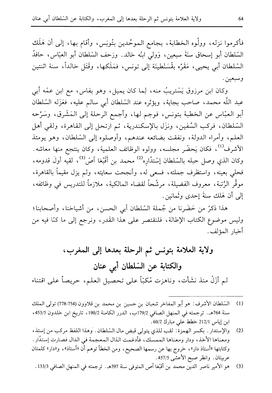 والكتابة عن السلطان أبي عنان