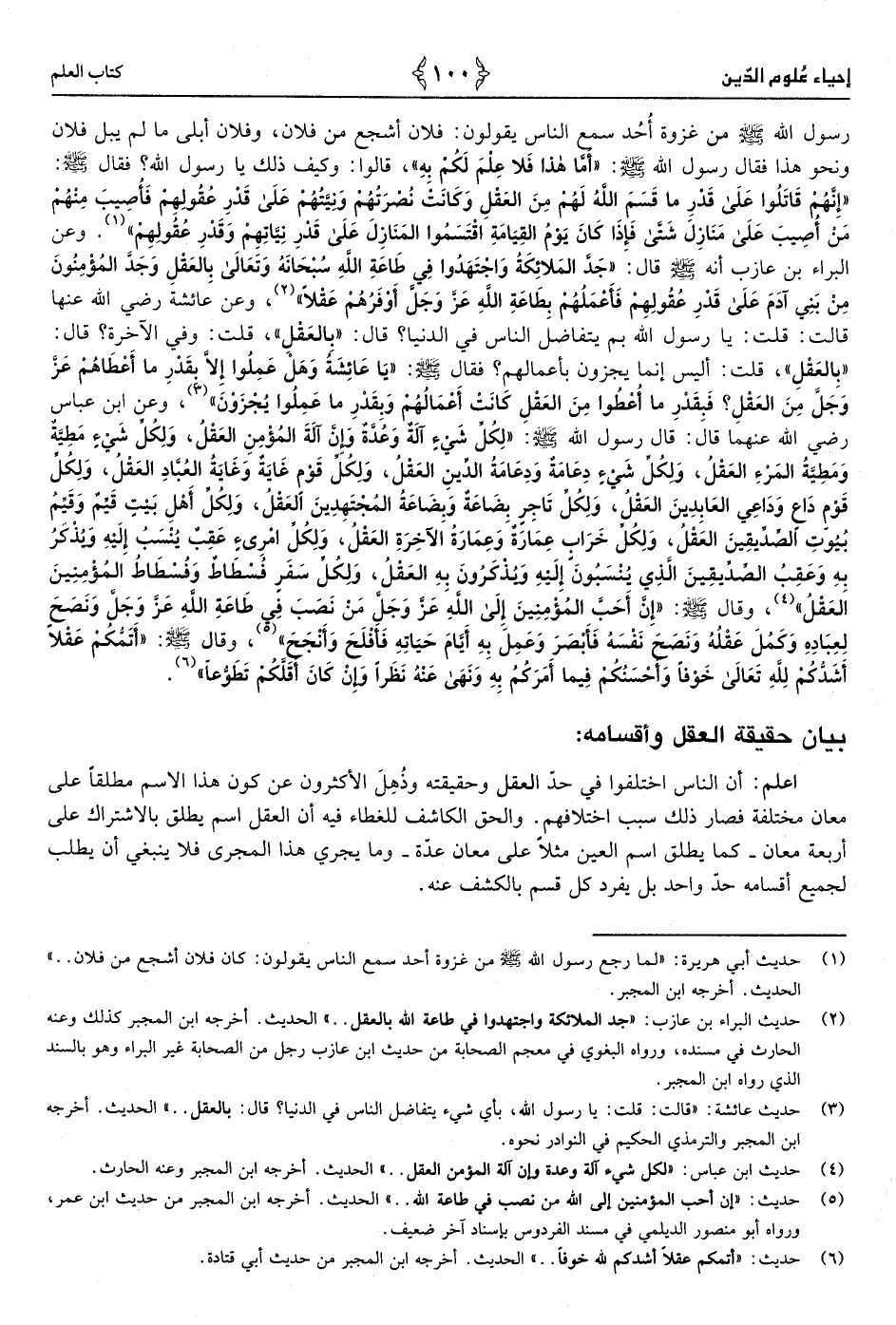 1 - حَدِيث ابْن عَبَّاس «لكل شَيْء آلَة وعدة وَإِن آلَة الْمُؤمن الْعقل وَلكُل شَيْء مَطِيَّة ومطية الْمَرْء الْعقل وَلكُل شَيْء دعامة ودعامة الدَّين الْعقل وَلكُل قوم غَايَة وَغَايَة الْعباد الْعقل وَلكُل قوم دَاع وداعي العابدين الْعقل وَلكُل تَاجر بضَاعَة وبضاعة الْمُجْتَهدين الْعقل وَلكُل أهل بَيت قيم وقيم بيُوت الصديقين الْعقل وَلكُل خراب عمَارَة وَعمارَة الْآخِرَة الْعقل وَلكُل امْرِئ عقب ينْسب إِلَيْهِ وَيذكر بِهِ وعقب الصديقين الَّذِي ينسبون إِلَيْهِ ويذكرون بِهِ الْعقل وَلكُل سفر فسطاط وفسطاط الْمُؤمنِينَ الْعقل»