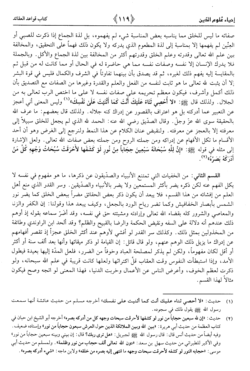 2 - حَدِيث «إِن لله سبعين حِجَابا من نور لَو كشفها لأحرقت سبحات وَجهه مَا أدْركهُ بَصَره»