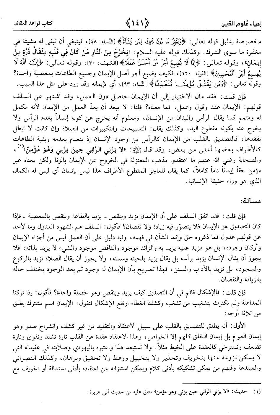 1 - حَدِيث «لَا يَزْنِي الزَّانِي حِين يَزْنِي وَهُوَ مُؤمن»