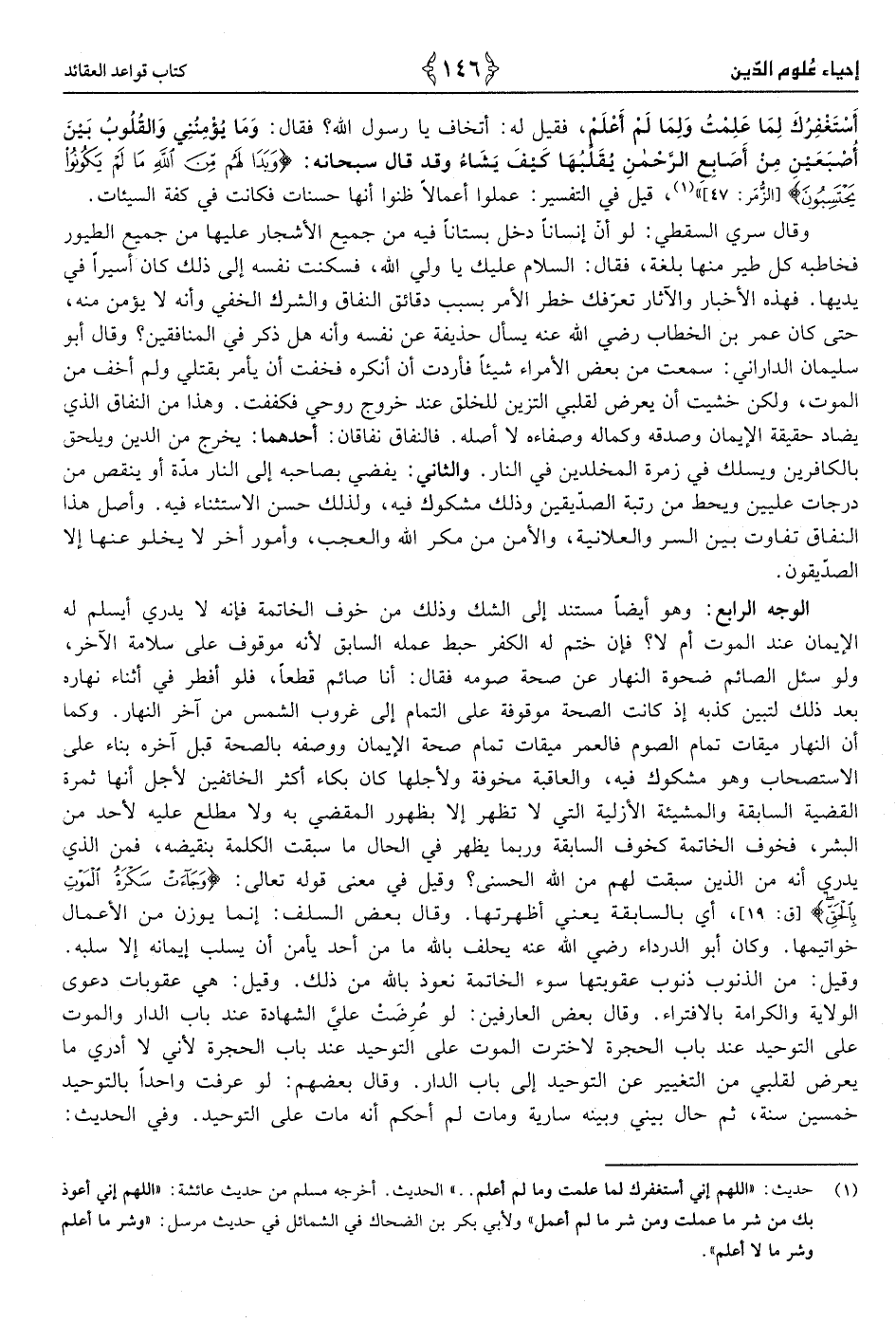 2 - حَدِيث "اللَّهُمَّ إِنِّي أستغفرك لما علمت وَلما لم أعلم، فَقيل لَهُ: أتخاف يَا رَسُول الله فَقَالَ: وَمَا يؤمنني والقلوب بَين إِصْبَعَيْنِ من أَصَابِع الرَّحْمَن يقلبها كَيفَ يَشَاء! وَقد قَالَ سُبْحَانَهُ: {وبدا لَهُم من الله مَا لم يَكُونُوا يحتسبون} «