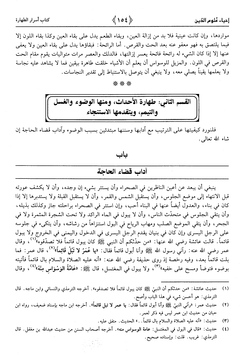 2 - حَدِيث عمر «رَآنِي النَّبِي صَلَّى الله عَلَيْهِ وَسلم وَأَنا أبول قَائِما فَقَالَ يَا عمر لَا تبل قَائِما»
