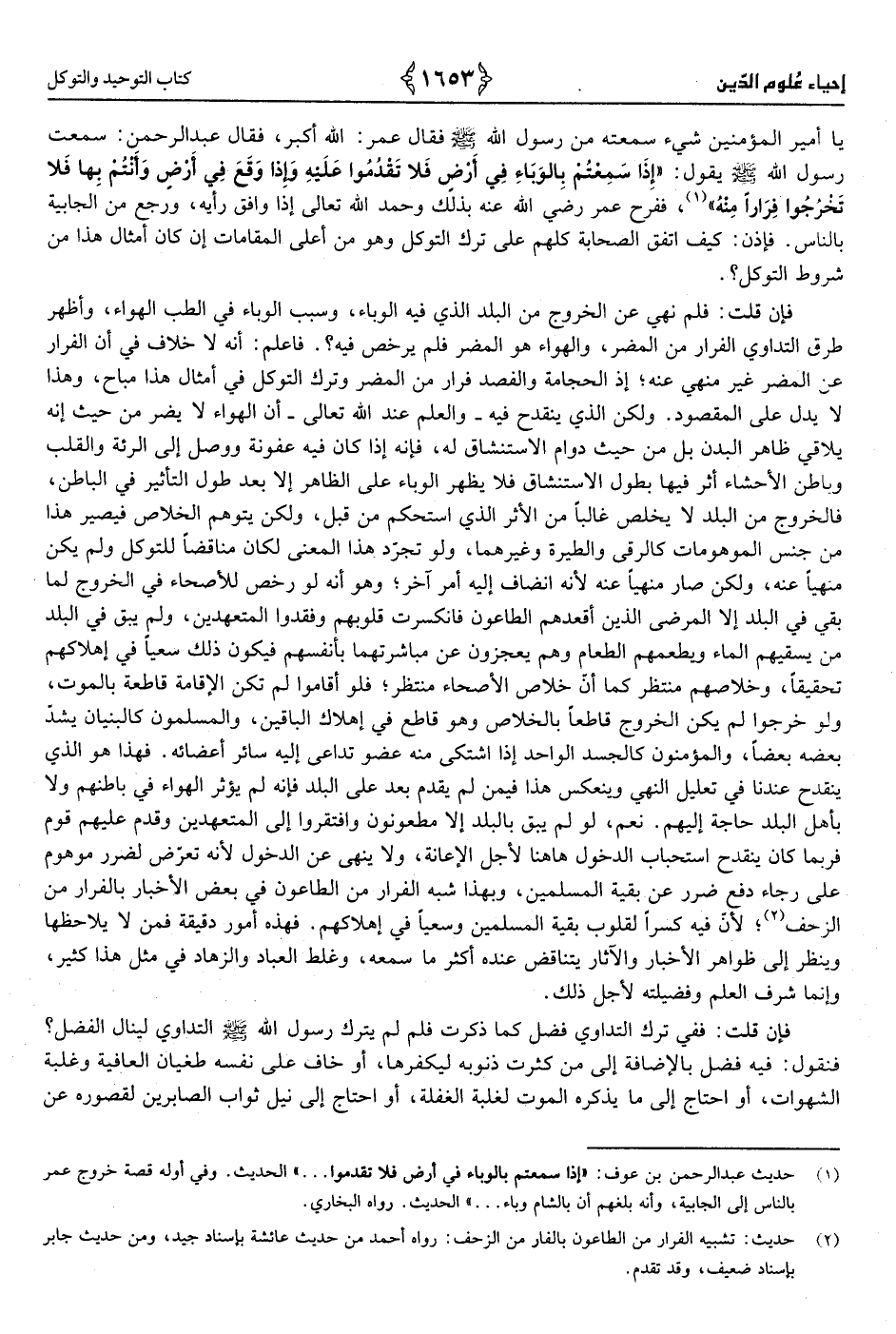 2 - حَدِيث: تَشْبِيه الْفِرَار من الطَّاعُون بالفار من الزَّحْف.