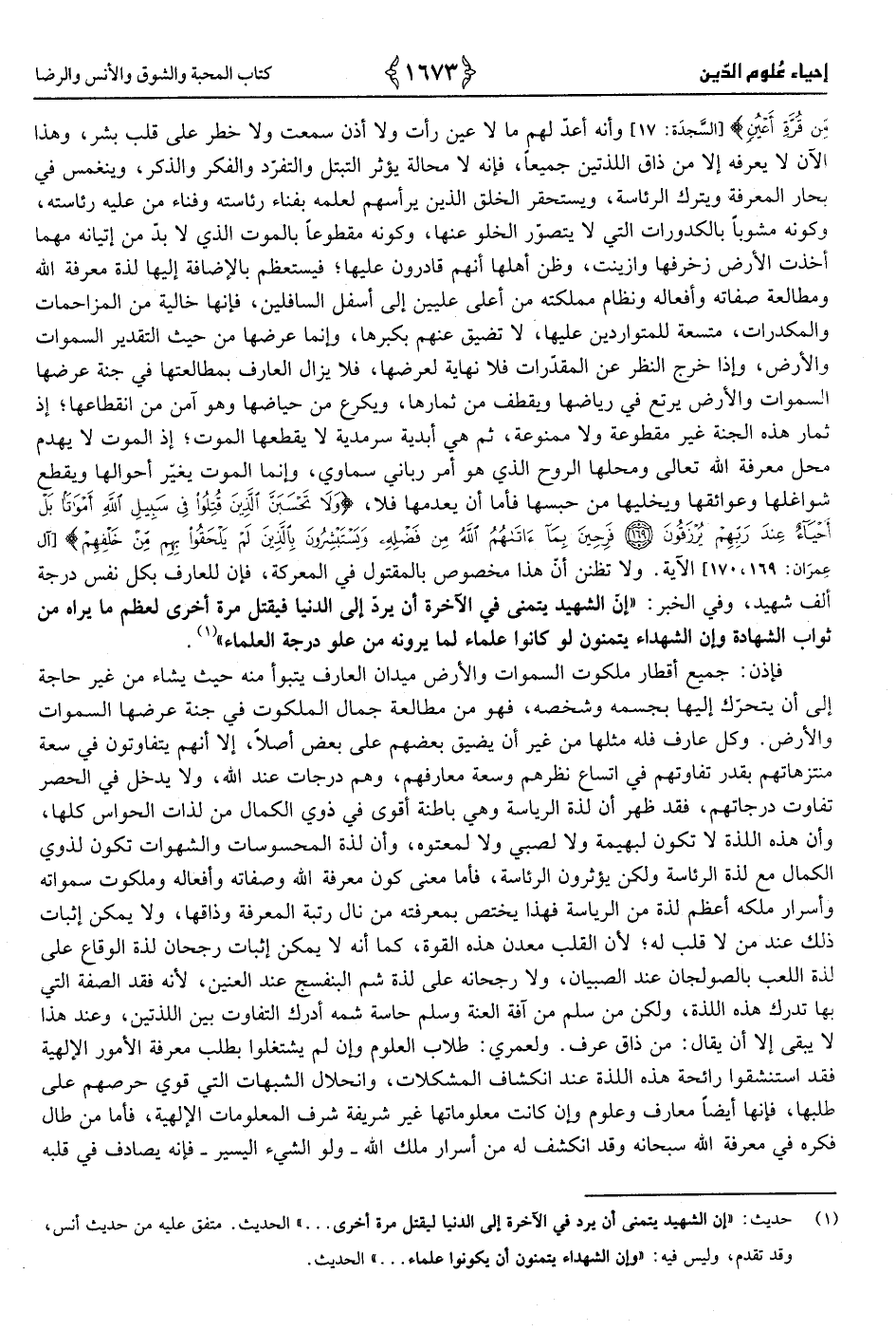 1 - حَدِيث «إِن الشَّهِيد يتَمَنَّى فِي الْآخِرَة أَن يرد إِلَى الدُّنْيَا فَيقْتل مرّة أُخْرَى لعظم مَا يرَاهُ من ثَوَاب الشَّهَادَة وَإِن الشُّهَدَاء يتمنون لَو كَانُوا عُلَمَاء لما يرونه من علو دَرَجَة الْعلمَاء»