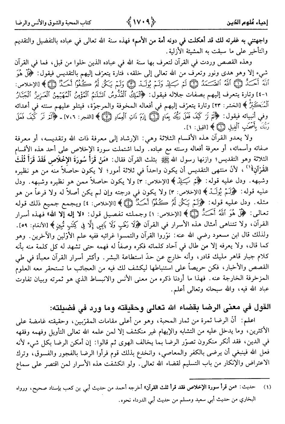 1 - حَدِيث «من قَرَأَ سُورَة الْإِخْلَاص فقد قَرَأَ ثلث الْقُرْآن»