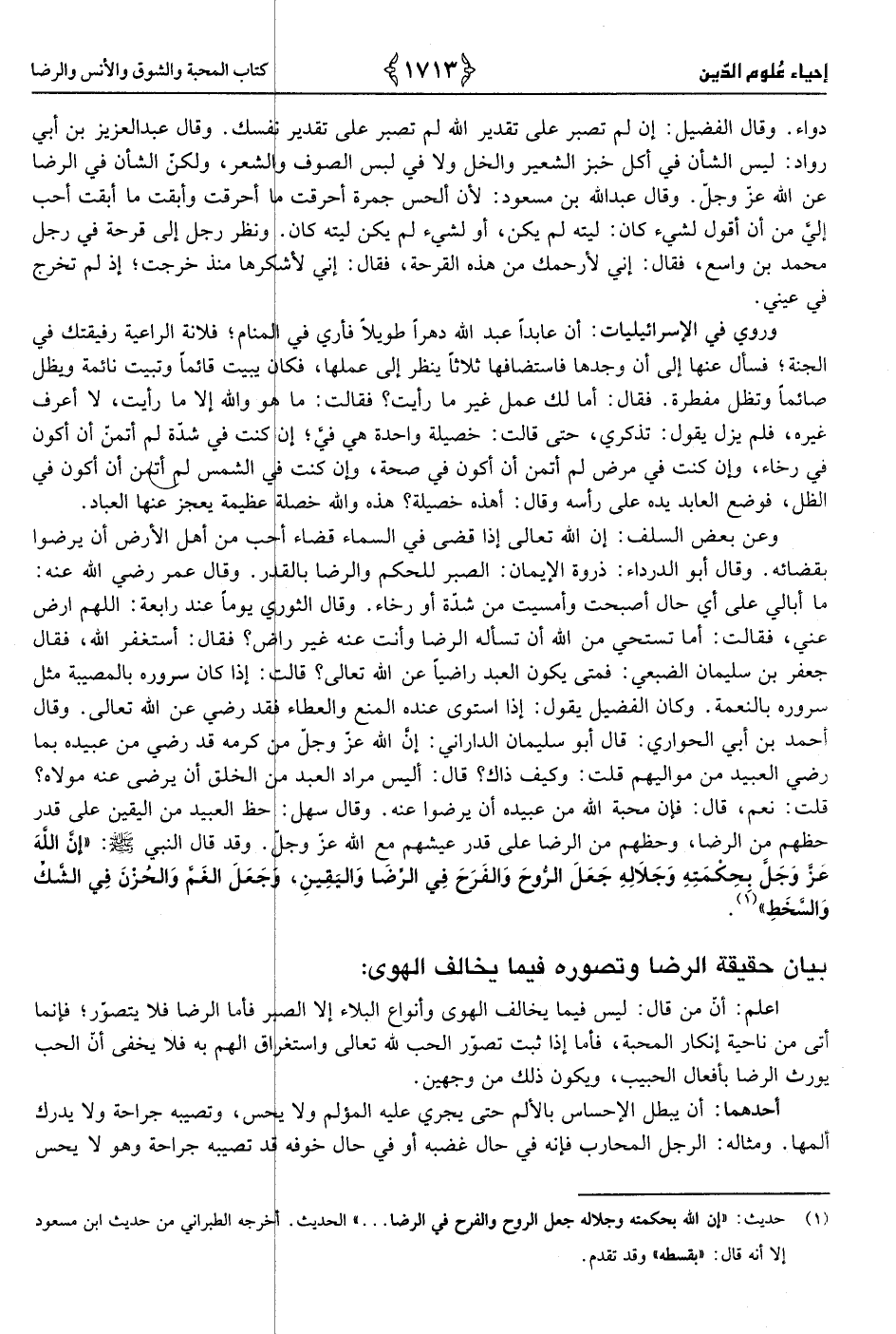 1 - حَدِيث «إِن الله عز وَجل بِحِكْمَتِهِ وجلاله جعل الرّوح والفرح فِي الرِّضَا وَالْيَقِين، وَجعل الْغم والحزن فِي الشَّك والسخط»