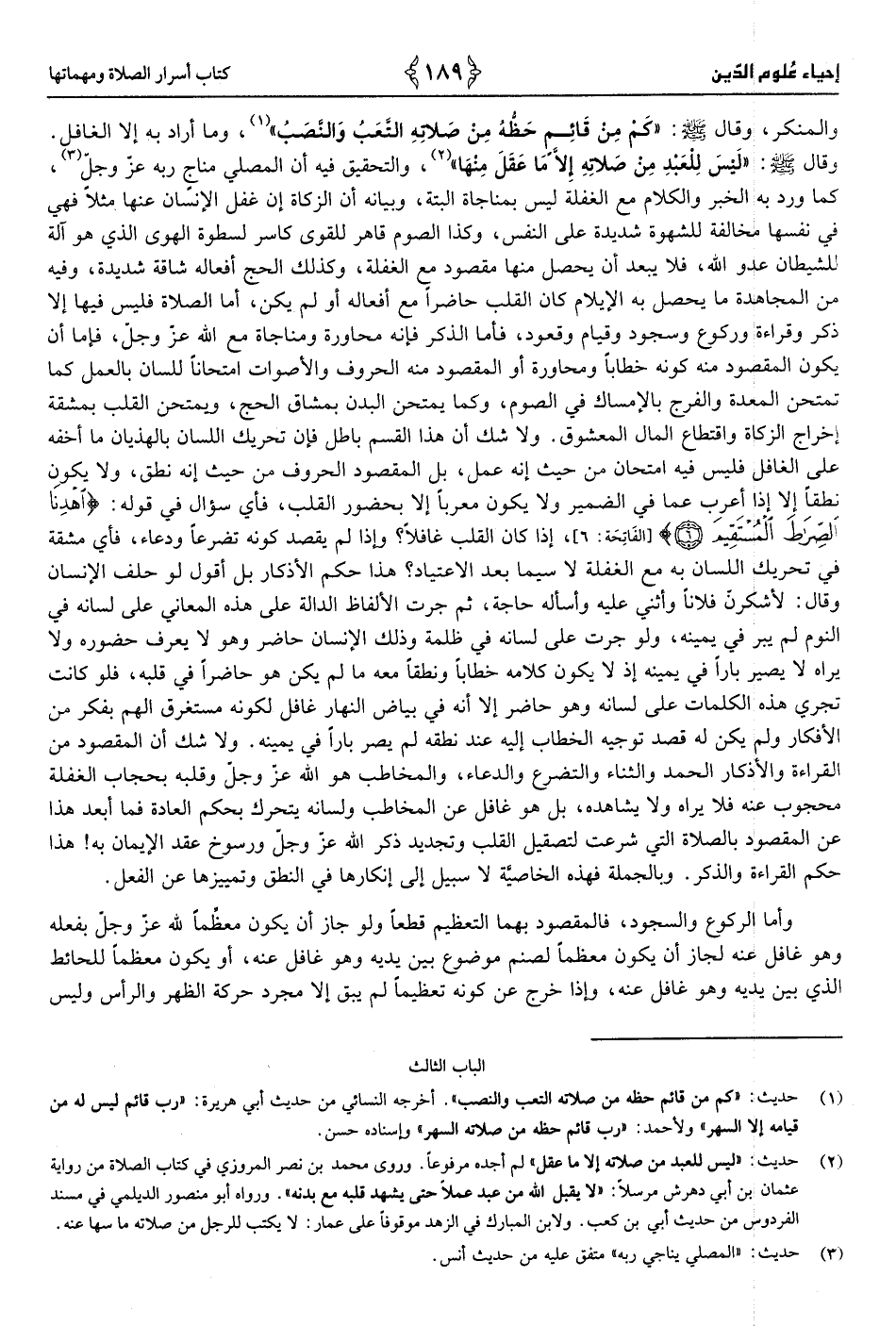 كتاب أسرار الصلاة ومهماتها: الباب الثالث