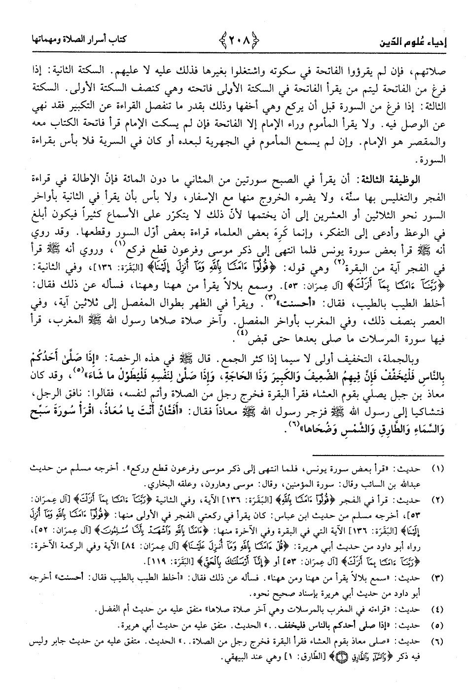 6 - حَدِيث "صَلَّى معَاذ بِقوم الْعشَاء فَقَرَأَ الْبَقَرَة فَخرج رجل من الصَّلَاة وَأتم لنَفسِهِ، فَقَالُوا نَافق الرجل، فتشاكيا إِلَى رَسُول الله صَلَّى الله عَلَيْهِ وَسلم فزجر رَسُول الله صَلَّى الله عَلَيْهِ وَسلم معَاذًا فَقَالَ: أفتان أَنْت يَا معَاذ اقْرَأ سُورَة سبح وَالسَّمَاء والطارق وَالشَّمْس وَضُحَاهَا «