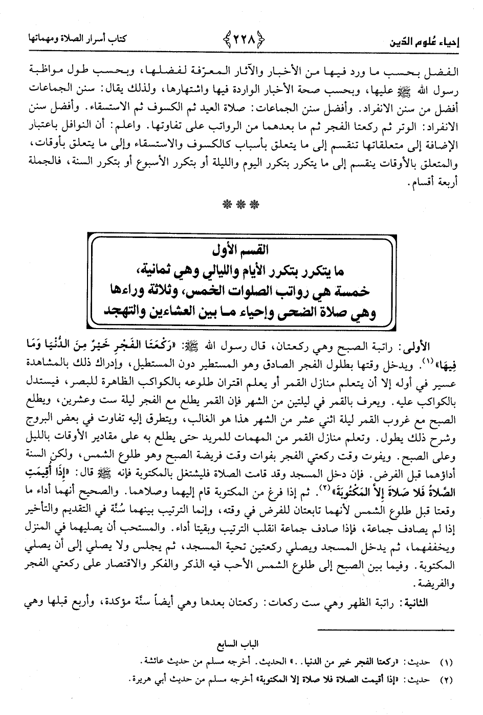 1 - حَدِيث «رَكعَتَا الْفجْر خير من الدُّنْيَا وَمَا فِيهَا»