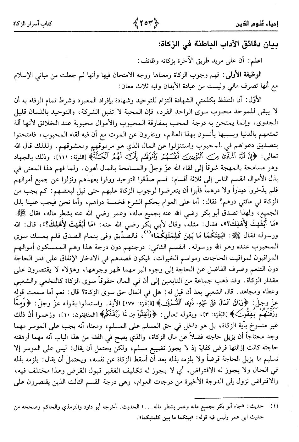 1 - حَدِيث "جَاءَ أَبُو بكر بِجَمِيعِ مَاله وَعمر بِشَطْر مَاله فَقَالَ صَلَّى الله عَلَيْهِ وَسلم: «مَا أبقيت لأهْلك» فَقَالَ: مثله، وَقَالَ لأبي بكر رَضِي الله عَنهُ «مَا أبقيت لأهْلك» قَالَ الله وَرَسُوله، فَقَالَ صَلَّى الله عَلَيْهِ وَسلم «بَيْنكُمَا مَا بَين كلمتيكما»