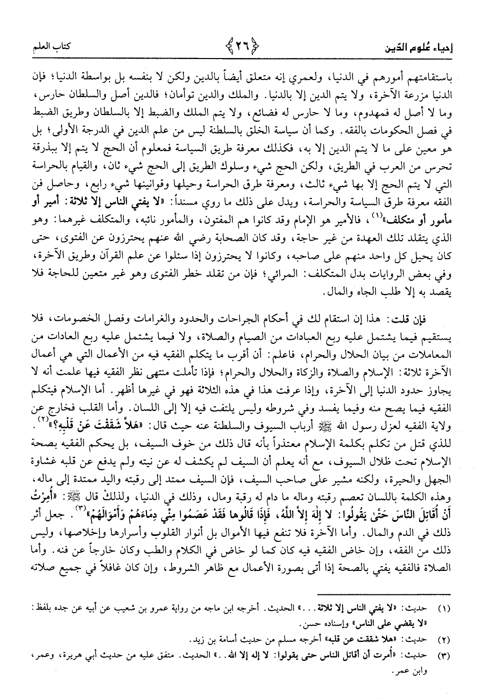 1 - حَدِيث «لَا يُفْتِي النَّاس إِلَّا ثَلَاثَة أَمِير أَو مَأْمُور أَو متكلف»