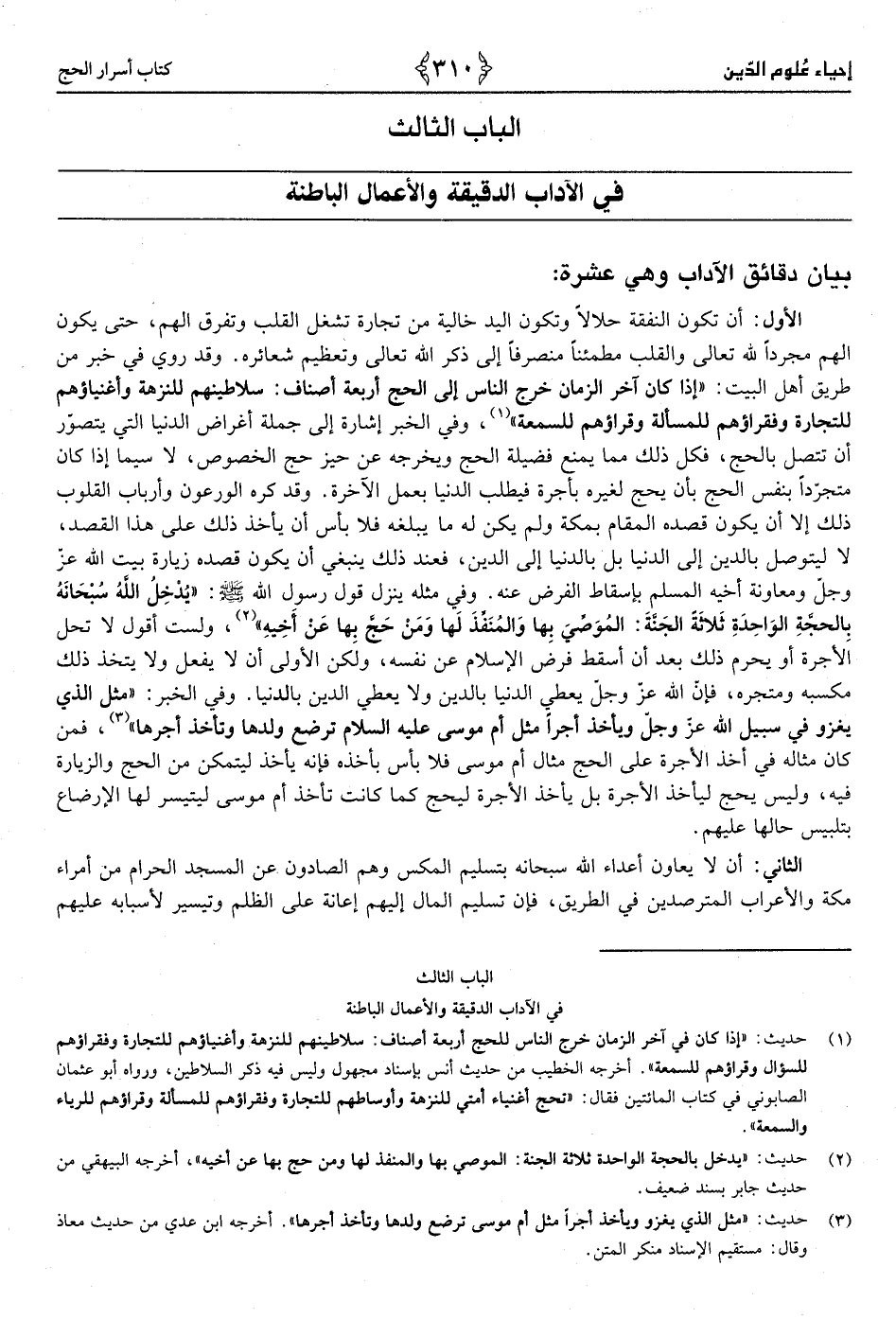 1 - حَدِيث «إِذا كَانَ فِي آخر الزَّمَان خرج النَّاس لِلْحَجِّ أَرْبَعَة أَصْنَاف سلاطينهم للنزهة وأغنياؤهم للتِّجَارَة وفقراؤهم للسؤال وقراؤهم للسمعة»