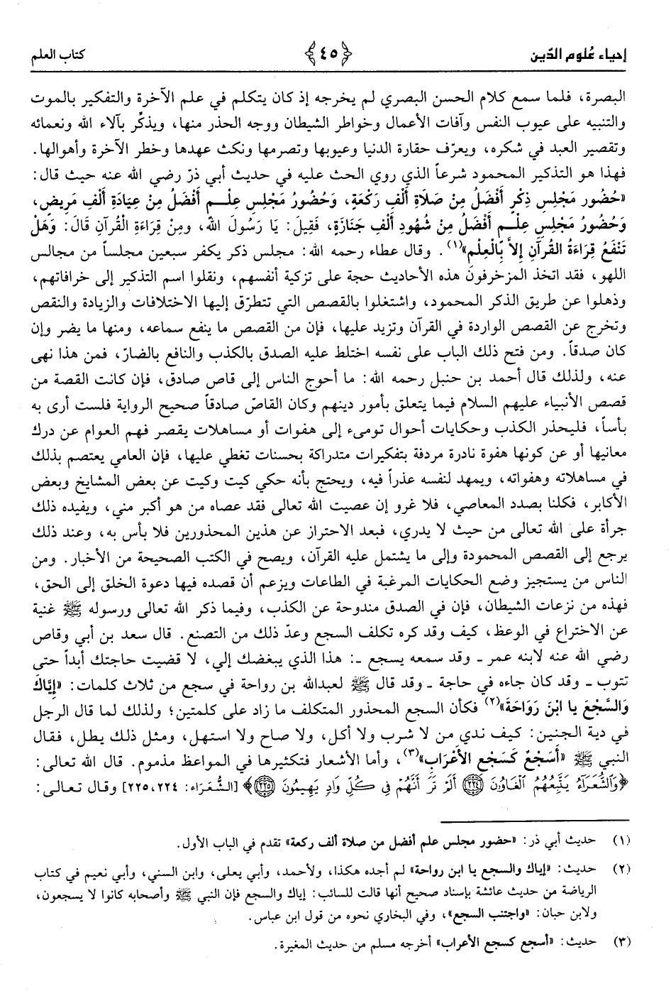 1 - حَدِيث أبي ذَر «حُضُور مجْلِس علم أفضل من صَلَاة ألف رَكْعَة.»