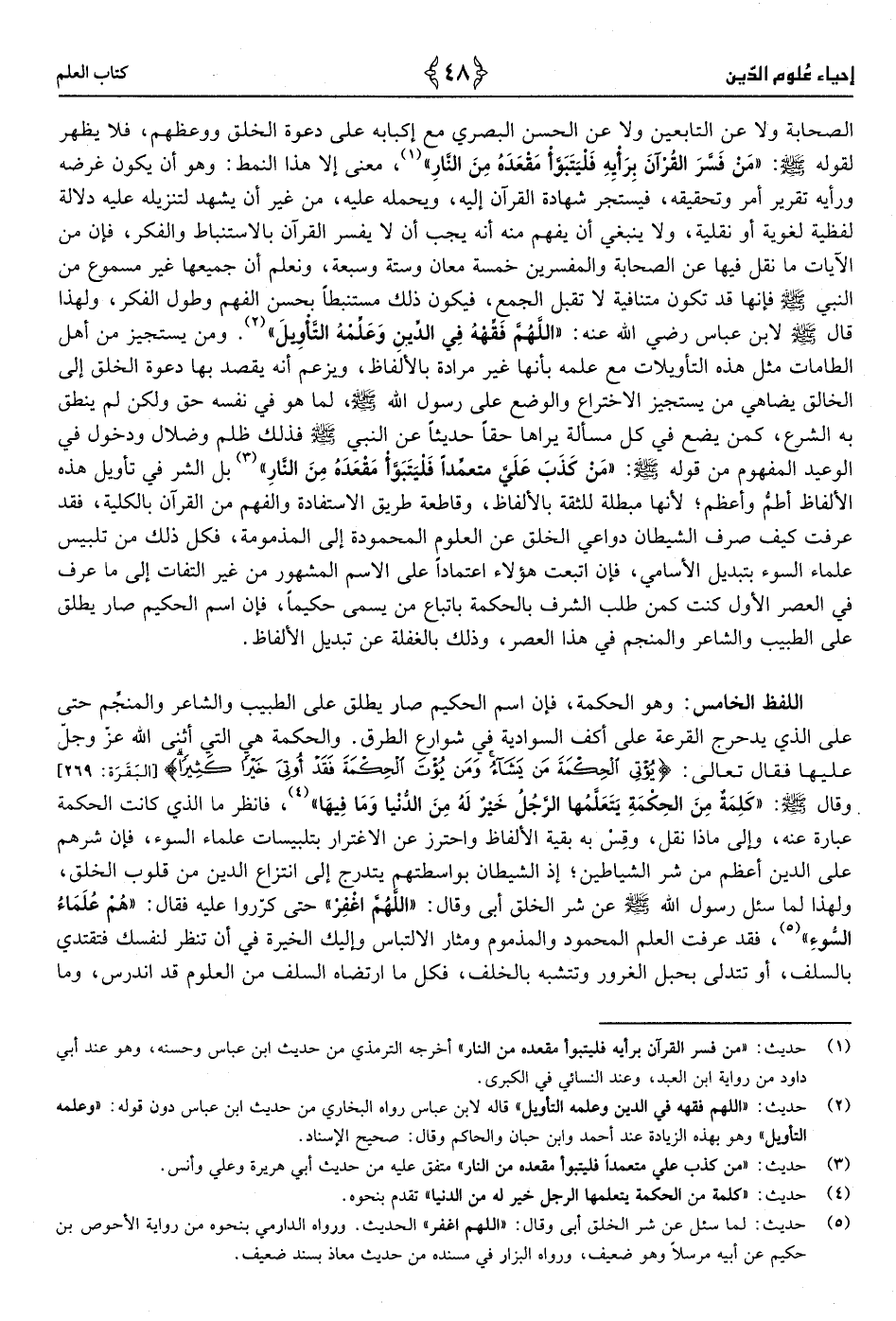 4 - حَدِيث «من فسر الْقُرْآن بِرَأْيهِ فَليَتَبَوَّأ مَقْعَده من النَّار»