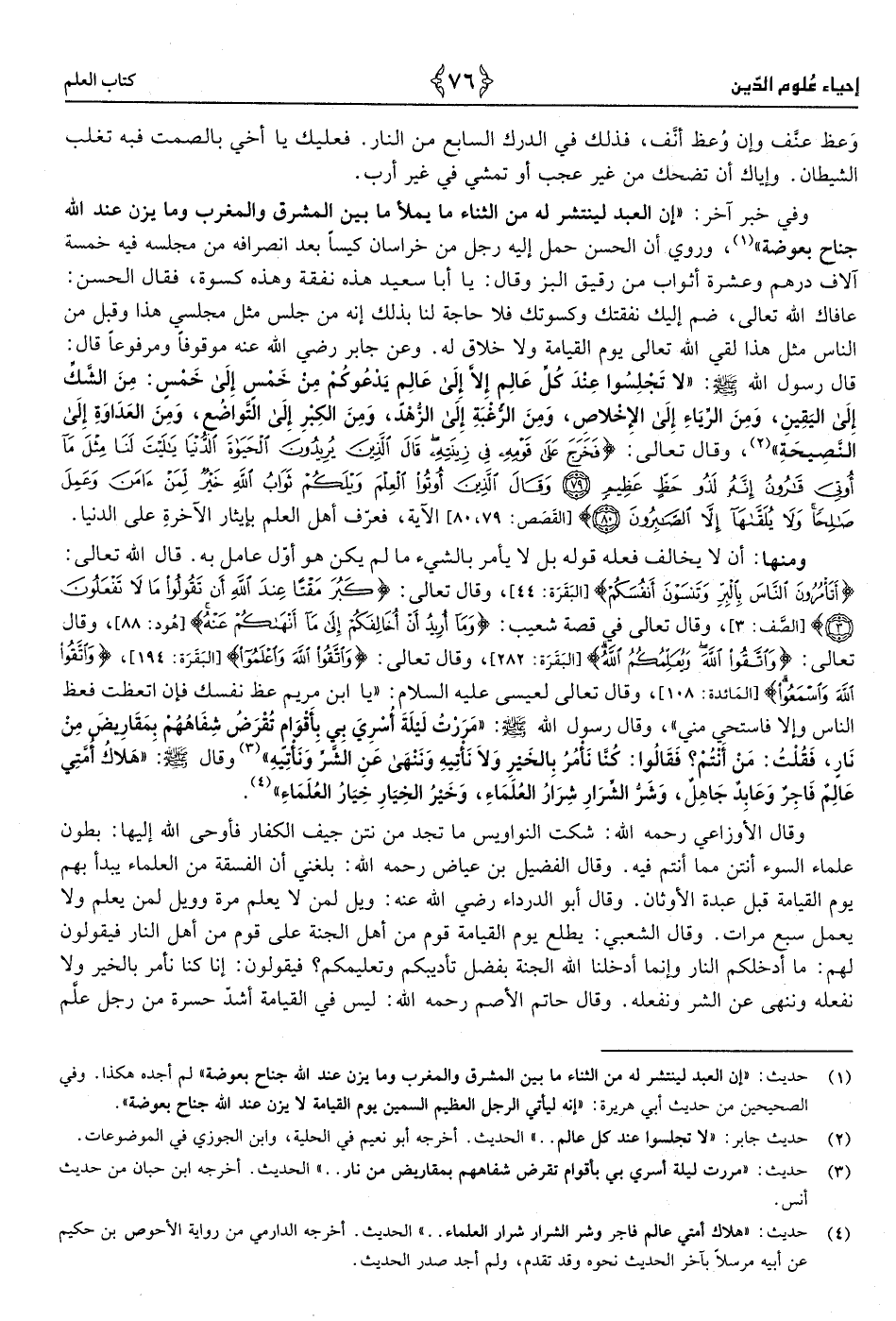 1 - حَدِيث جَابر "لَا تجلسوا عِنْد كل عَالم إِلَّا إِلَى عَالم يدعوكم من خمس إِلَى خمس: من الشَّك إِلَى الْيَقِين، وَمن الرِّيَاء إِلَى الْإِخْلَاص، وَمن الرَّغْبَة إِلَى الزّهْد، وَمن الْكبر إِلَى التَّوَاضُع، وَمن الْعَدَاوَة إِلَى النَّصِيحَة"
