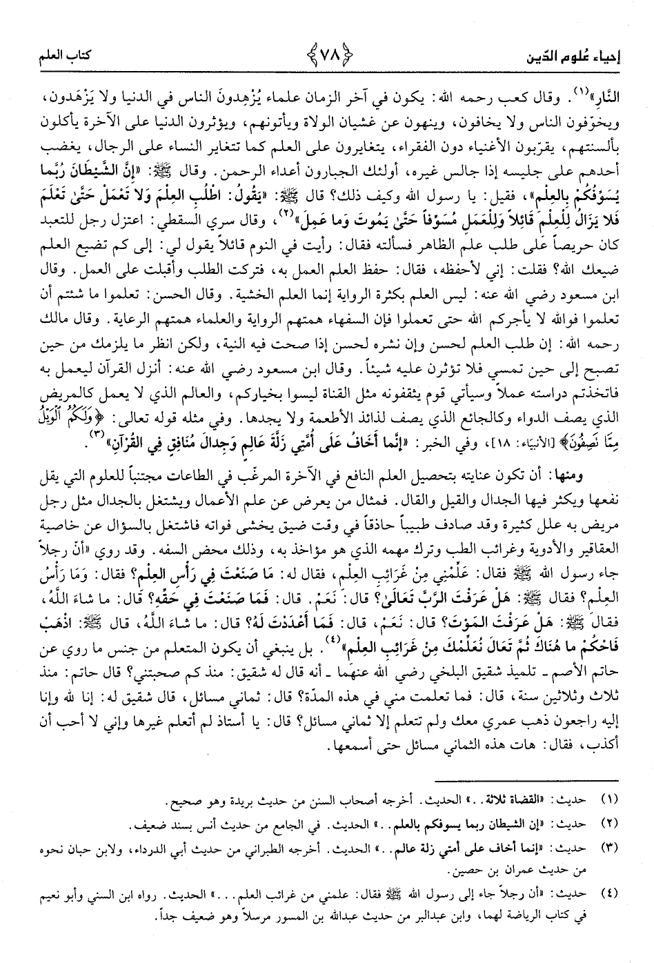 3 - حَدِيث "إِن الشَّيْطَان رُبمَا يسوفكم بِالْعلمِ، قيل يَا رَسُول الله: وَكَيف ذَلِك؟ قَالَ صَلَّى الله عَلَيْهِ وَسلم: يَقُول اطلب الْعلم وَلَا تعْمل حَتَّى تعلم فَلَا يزَال للْعلم قَائِلا وللعمل مسوفا حَتَّى يَمُوت وَمَا عمل"