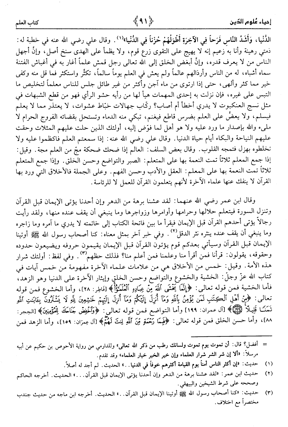 3 - حَدِيث ابْن عمر «لقد عِشْنَا بُرْهَة من الدَّهْر وَإِن أَحَدنَا يُؤْتَى الْإِيمَان قبل الْقُرْآن وتنزل السُّورَة فيتعلم حلالها وحرامها وأوامرها وزواجرها وَمَا يَنْبَغِي أَن يقف عِنْده مِنْهَا، وَلَقَد رَأَيْت رجَالًا يُؤْتَى أحدهم الْقُرْآن قبل الْإِيمَان فَيقْرَأ مَا بَين فَاتِحَة الْكتاب إِلَى خاتمته لَا يدْرِي مَا آمره وَمَا زاجره وَمَا يَنْبَغِي أَن يقف عِنْده، يَنْثُرهُ الدقل»