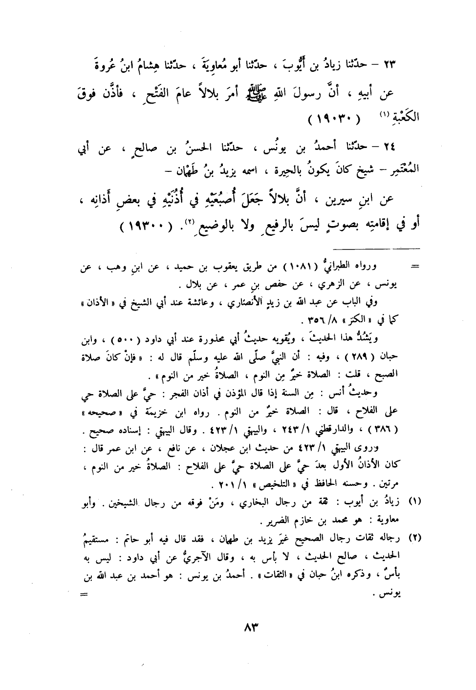 24 - حَدَّثَنَا أَحْمَدُ بْنُ يُونُسَ، حَدَّثَنَا الْحَسَنُ بْنُ صَالِحٍ، عَنْ أَبِي الْمُعْتَمِرِ - شَيْخٍ كَانَ يَكُونُ بِالْحِيرَةِ اسْمُهُ يَزِيدُ بْنُ طَهْمَانَ، عَنِ ابْنِ سِيرِينَ «أَنَّ بِلَالًا §جَعَلَ أُصْبُعَيْهِ فِي أُذُنَيْهِ فِي بَعْضِ أَذَانِهِ أَوْ فِي إِقَامَتِهِ بِصَوْتٍ لَيْسَ بِالرَّفِيعِ وَلَا بِالْوَضِيعِ» -[84]- قَالَ أَبُو دَاوُدَ: أَصْلُهُ بَصْرِيٌّ
