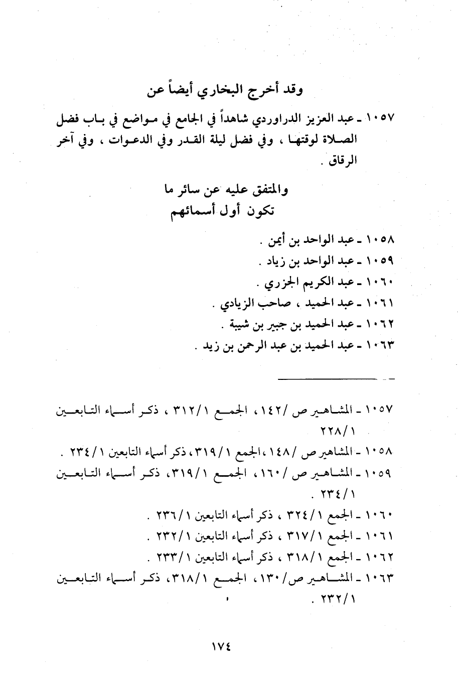 1057 - عبد الْعَزِيز بن الدَّرَاورْدِي شَاهدا فِي الْجَامِع فِي مَوَاضِع فِي بَاب فضل الصَّلَاة لوَقْتهَا وَفِي فضل لَيْلَة الْقدر وَفِي الدَّعْوَات وَفِي آخر الرقَاق