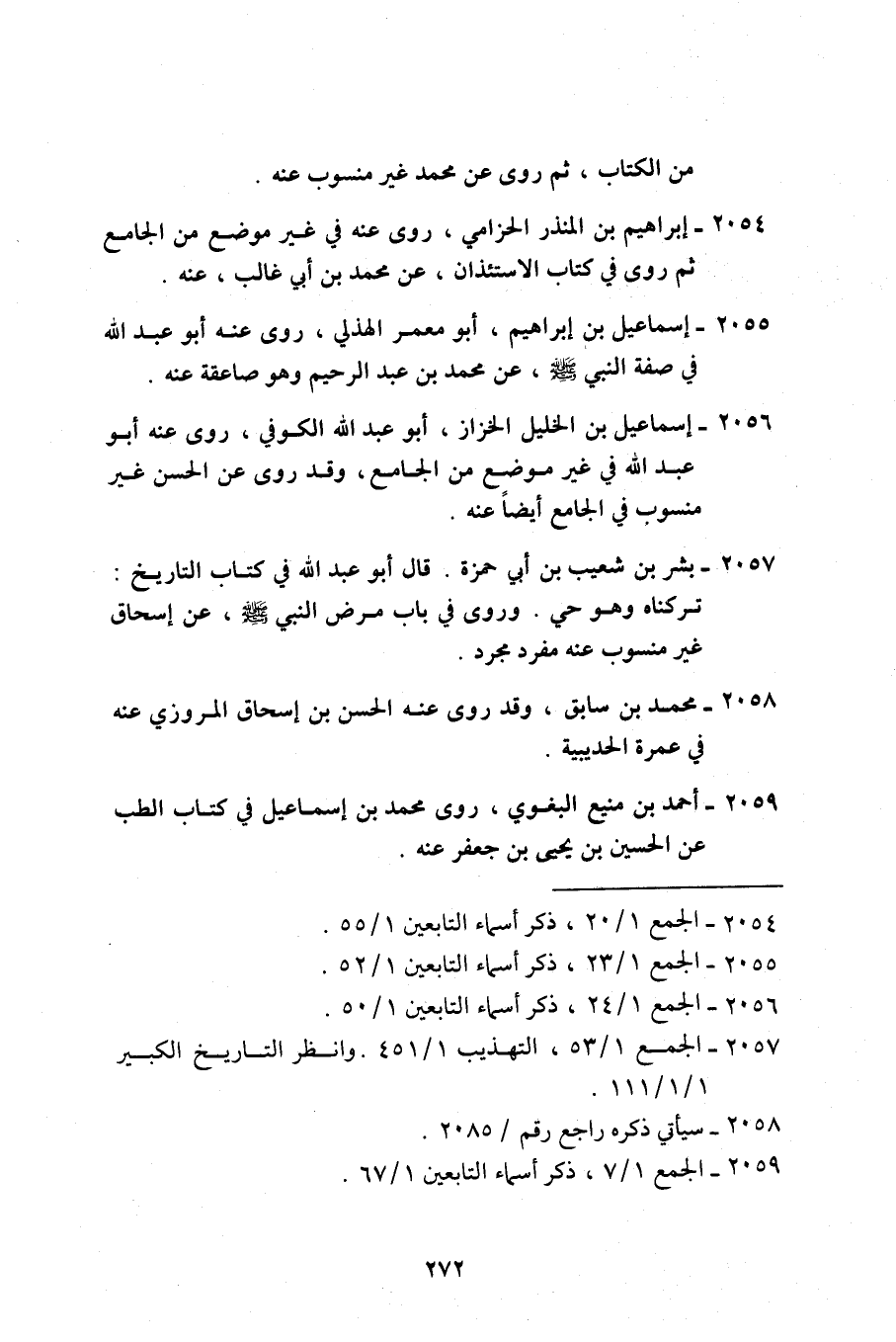2059 - أَحْمد بن منيع الْبَغَوِيّ روى مُحَمَّد بن إِسْمَاعِيل فِي كتاب الطِّبّ عَن الْحُسَيْن بن يحيى بن جَعْفَر عَنهُ