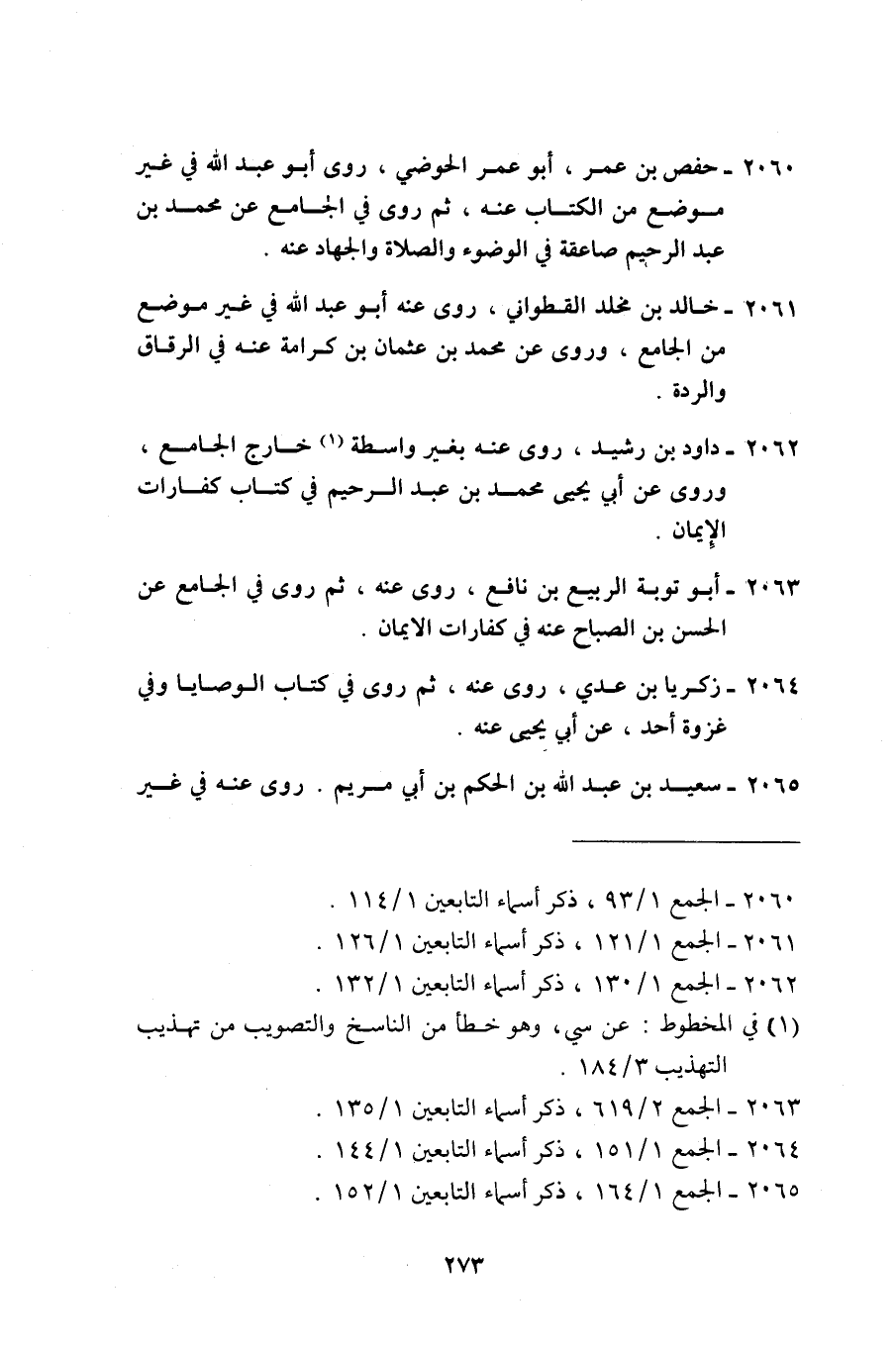 2060 - حَفْص بن عمر أَبُو عمر الحوضي روى أَبُو عبد الله فِي غير مَوضِع من الْكتاب عَنهُ ثمَّ روى فِي الْجَامِع عَن مُحَمَّد بن عبد الرَّحِيم صَاعِقَة فِي الْوضُوء وَالصَّلَاة وَالْجهَاد عَنهُ