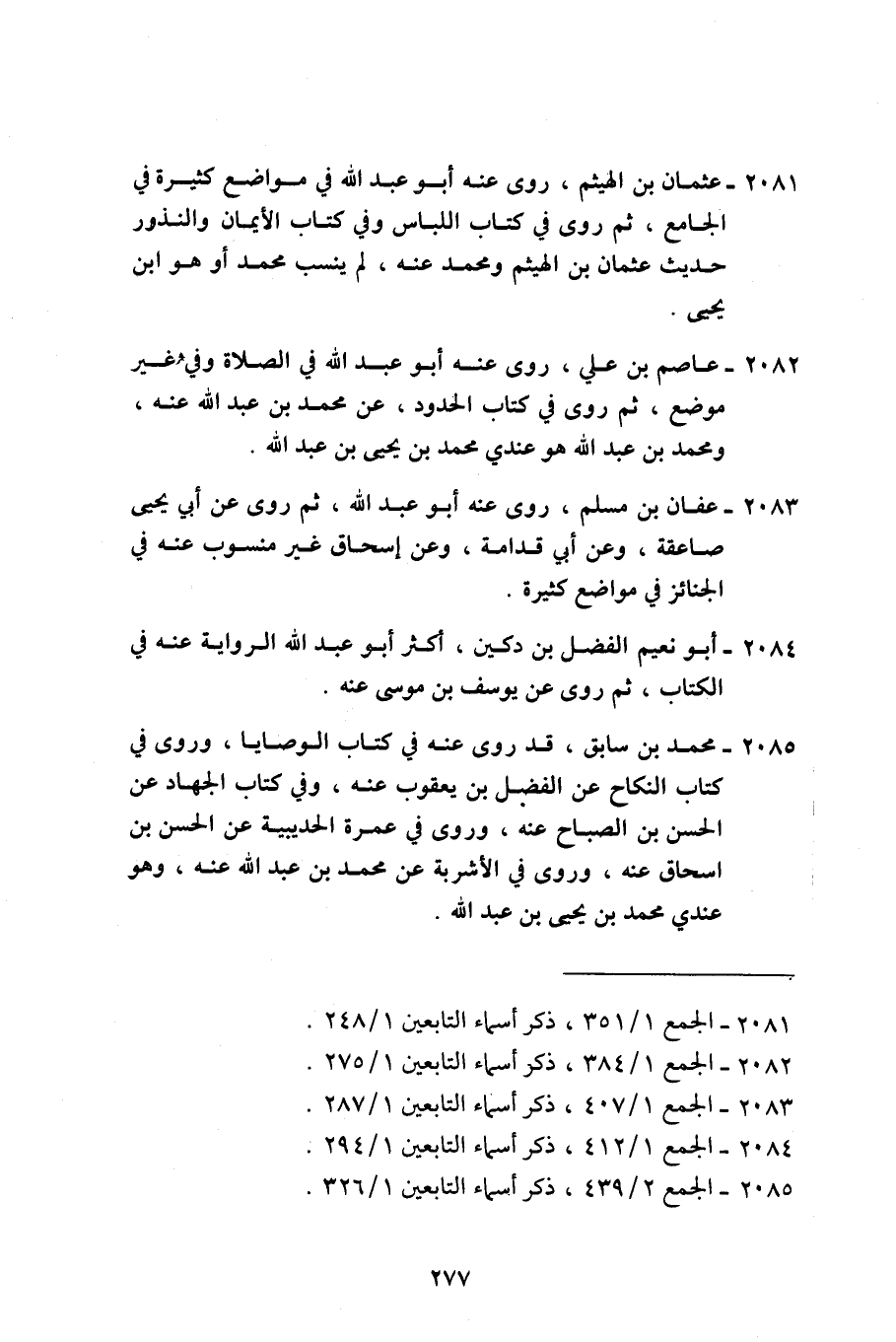 2081 - عُثْمَان بن الْهَيْثَم روى عَنهُ أَبُو عبد الله فِي مَوَاضِع كَثِيرَة فِي الْجَامِع ثمَّ روى فِي كتاب اللبَاس وَفِي كتاب الْأَيْمَان وَالنُّذُور حَدِيث عُثْمَان بن الْهَيْثَم وَمُحَمّد عَنهُ لم ينْسب مُحَمَّد أَو هُوَ ابْن يحيى