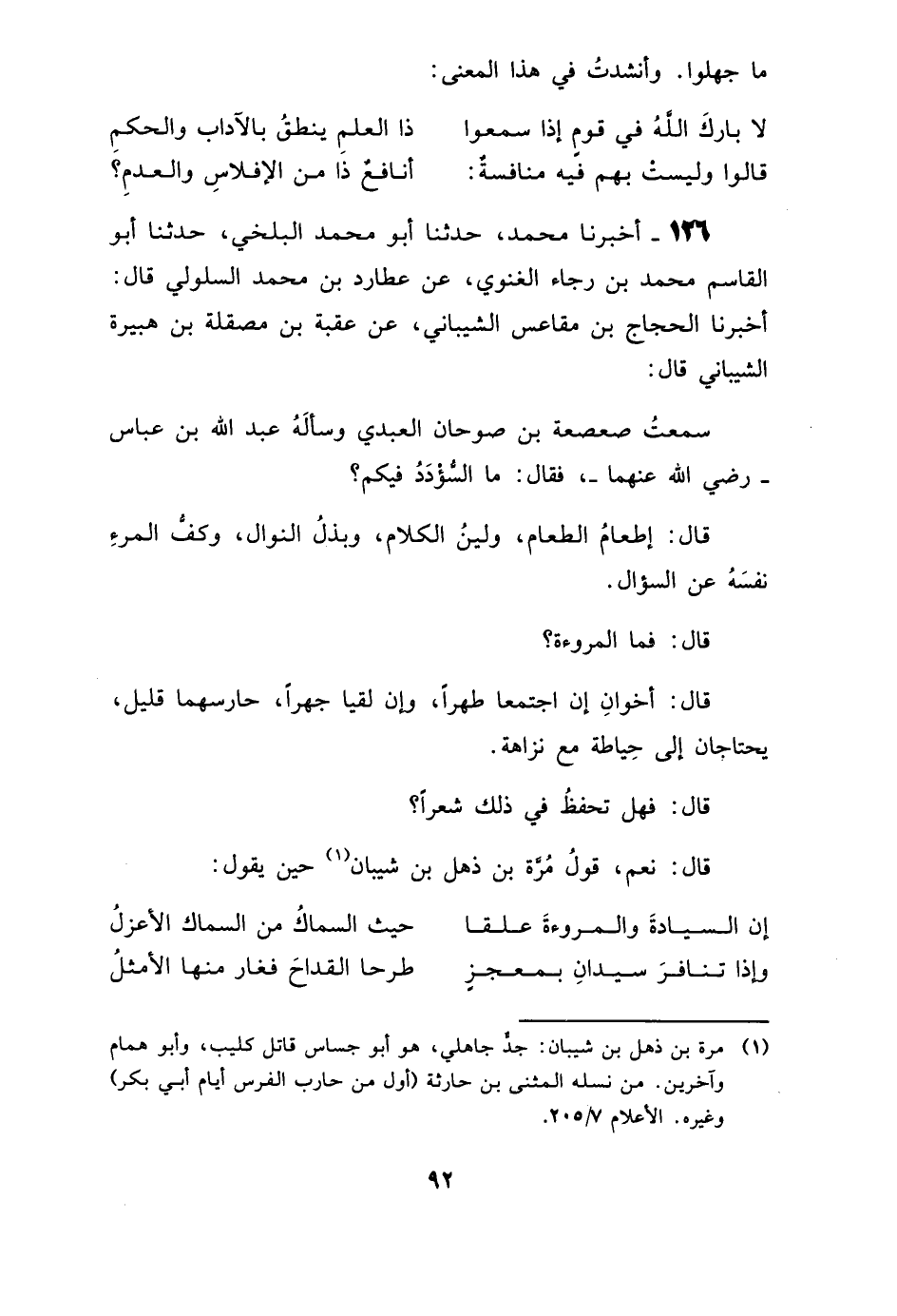قَالَ: نَعَمْ، قَوْلُ مُرَّةَ بْنِ ذَهْلِ بْنِ شَيْبَانَ حِينَ يقُولُ: